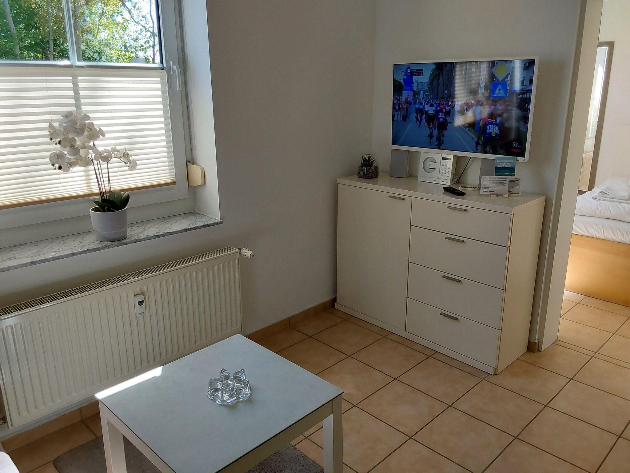 Die modern eingerichteten 1-Raum-Appartements dieser Kategorie sind für 2 Personen geeignet und ca. 30 qm groß. Sie verfügen über einen Wohn-/Schlafraum mit Doppelbett für 2 Personen. Alle unsere Wohnungen sind Nichtraucher-Wohnungen. Bei einigen Appartements können Sie Ihr Haustier mitbringen (s. Zimmerdaten). Ausstattung: Sat-TV, Radio, Küchenzeile, Dusche/WC, möblierte Terrasse oder Balkon. Bettwäsche und Handtücher als Erstausstattung.
