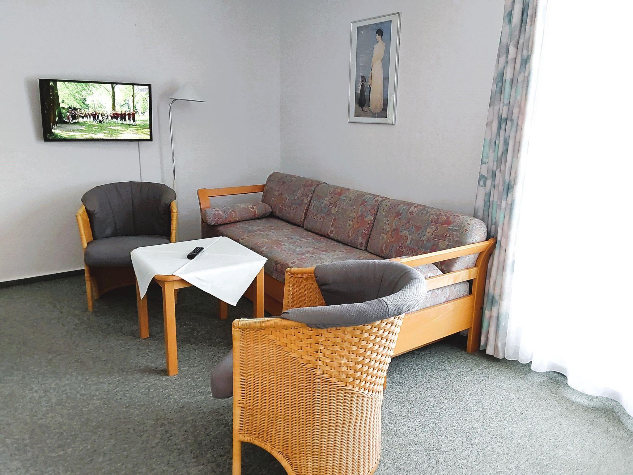 Die modern eingerichteten 1-Raum-Appartements dieser Kategorie sind für 2 Personen geeignet und ca. 30 qm groß. Sie verfügen über einen Wohn-/Schlafraum mit Doppelbett für 2 Personen. Alle unsere Wohnungen sind Nichtraucher-Wohnungen. Bei einigen Appartements können Sie Ihr Haustier mitbringen (s. Zimmerdaten). Ausstattung: Sat-TV, Radio, Küchenzeile, Dusche/WC, möblierte Terrasse oder Balkon. Bettwäsche und Handtücher als Erstausstattung.
