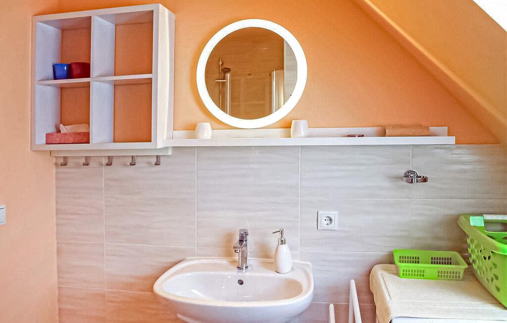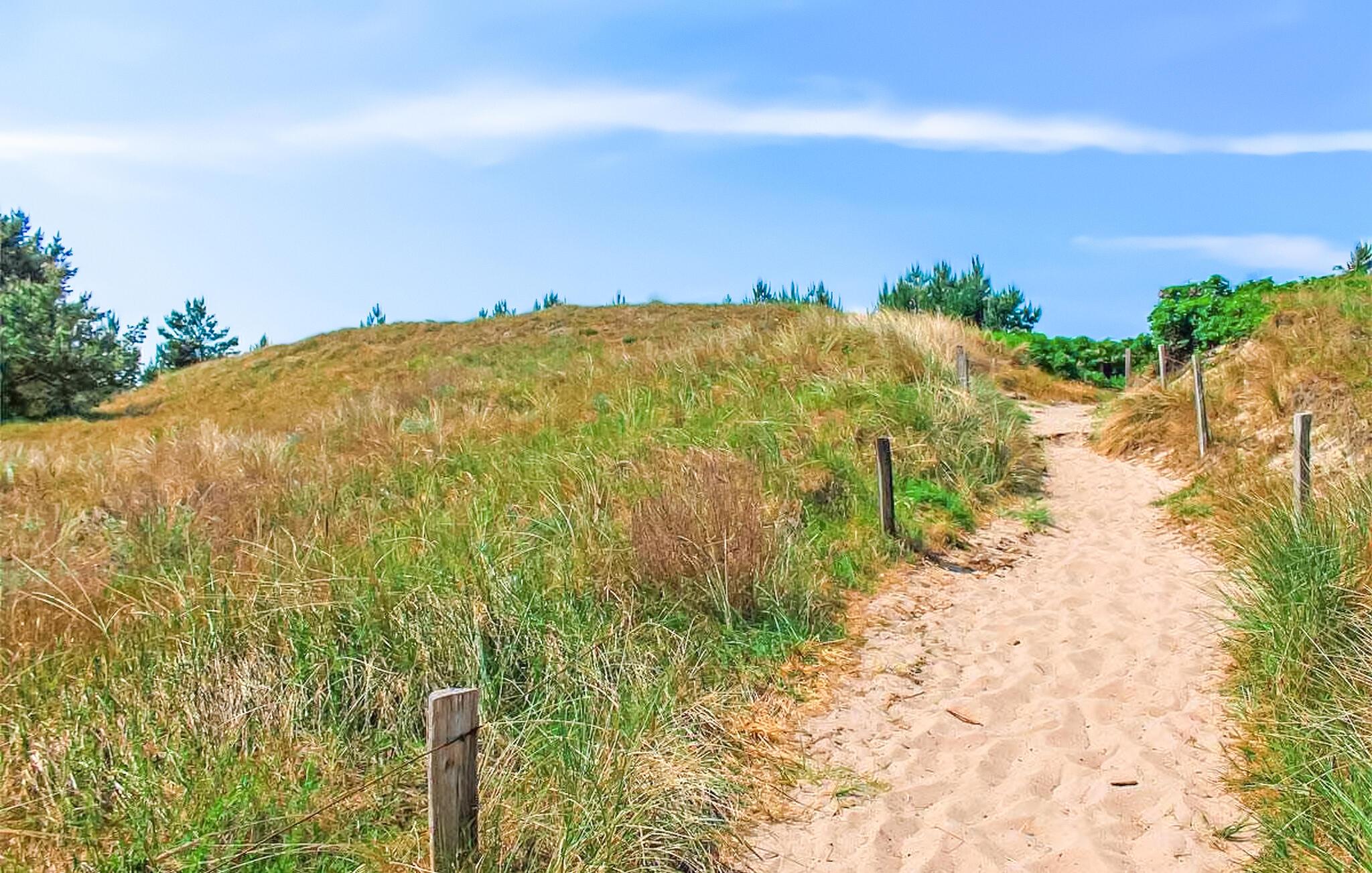 Sommerhuset med to separate ferielejligheder, nybygget i 2016, ligger på en separat rekreativ ejendom i et skønt skovområde lige bag klitterne (strand ca. 50 m) i Neuhaus-kvarteret. Lejlighederne strækker sig over to plan. Stuen er i stueetagen -/spisestue (polstrede møbler med sovefunktion, spisebord, fladskærms TV, radio/CD, Blu-Ray afspiller), åbent tekøkken (elkomfur med ovn, køleskab med fryser, mikroovn, opvaskemaskine, diverse køkkenmaskiner) og et gæsteværelse Toilet På øverste etage er der soveværelse (dobbeltseng, sovesofa) og bad/toilet med vaskemaskine og hårtørrer.