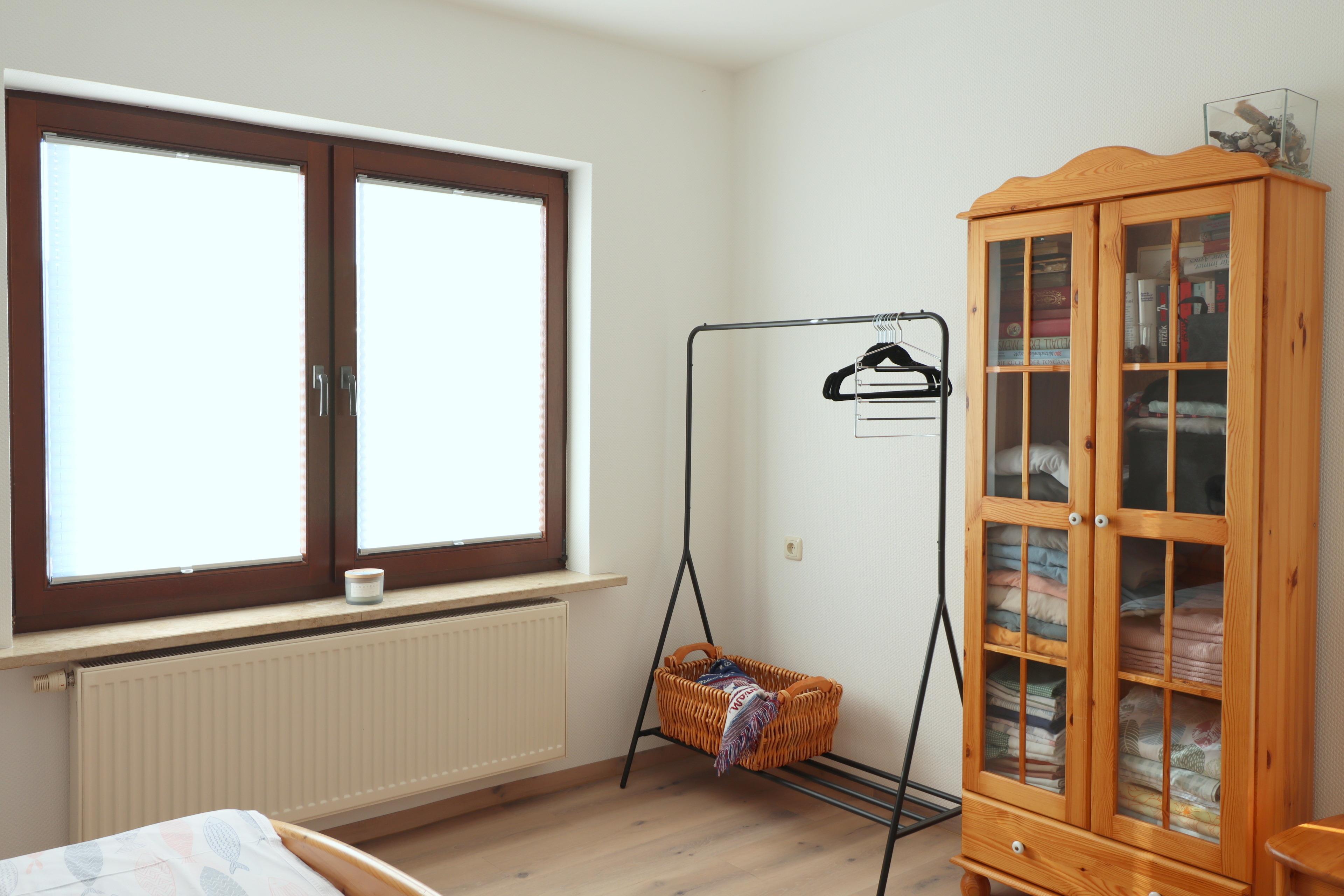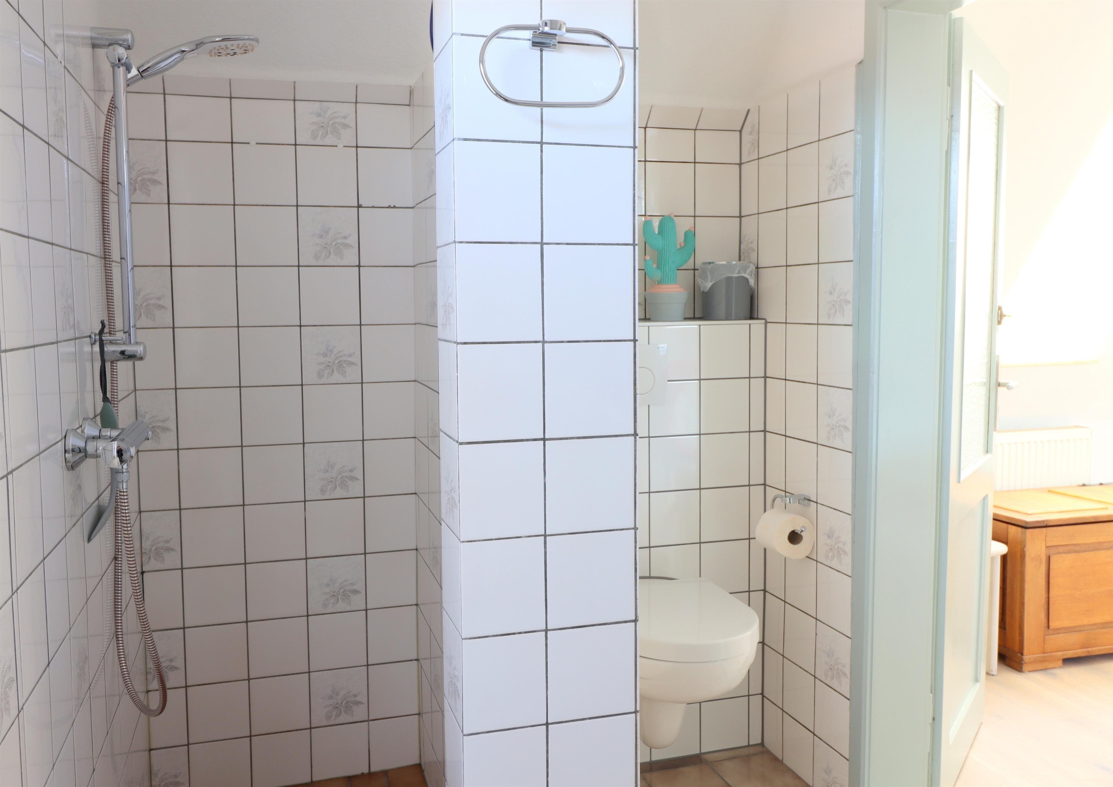 Im Obergeschoss befindet sich ein großes Schlafzimmer, das durch einen abgeteilten kleinen Raum ergänzt wird - ideal als zusätzliche Schlafmöglichkeit, Rückzugsort oder Ankleide. Das helle Badezimmer verfügt sowohl über eine Dusche als auch eine Badewanne und lädt zum Wohlfühlen ein.