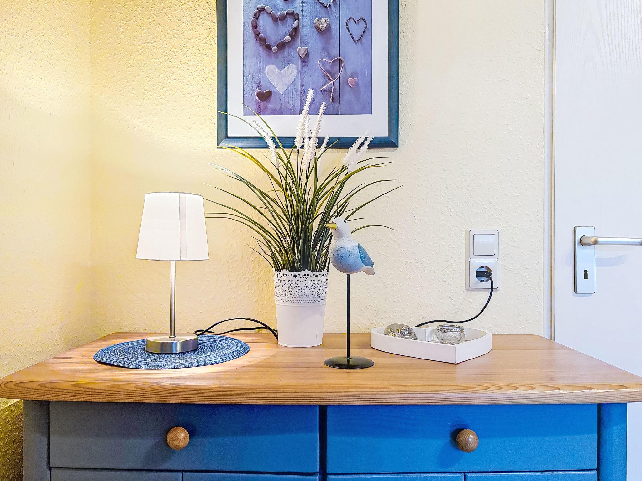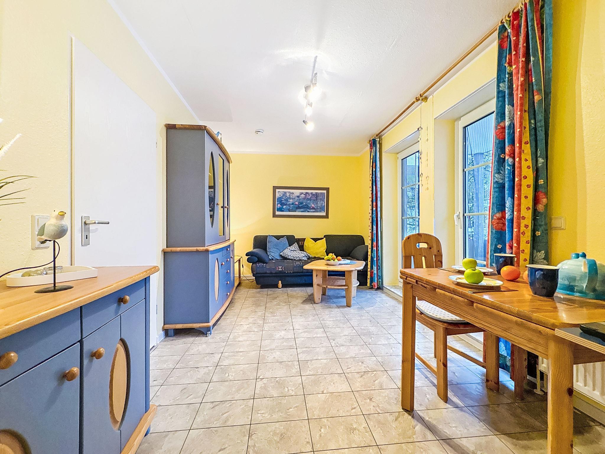 "Möwenblick", 2-room apartment 42 m2 on 1st floor. Rustic and cosy furnishings: living/dining room with digital TV. Exit to the balcony. 1 room with 1 double bed (180 cm, length 200 cm), digital TV. Small kitchen (4 hot plates, dishwasher, toaster, kettle, freezer, electric coffee machine). Shower/WC. Large balcony 6 m2. Balcony furniture. Facilities: Internet (WiFi, free). Parking space n 237 at the house. Please note: non-smokers only.
