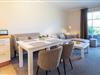 Stueetage: (åbent køkken(kogeplade(Komfur med fire kogeplader, glaskeramisk), elkedel, brødrister, emhætte, kaffemaskine, ovn, opvaskemaskine , køleskab(+ fryser)), stue / spisestue(Fjernsyn(fladskærm, parabol), spisebord, sofahjørne, radio, telefon), soveværelse(dobbeltseng, Fjernsyn), badeværelse(bruser, håndvask, toilet, føntørrer), pulterkammer) tørretumbler(deles med andre gæster, betalt), sauna(deles med andre gæster), vaskemaskine(deles med andre gæster, betalt), terrasse, havemøbler, parkering, swimmingpool(deles med andre gæster, indendørs), fitnessapparater(deles med andre gæster), Vaskeripakke inkl.