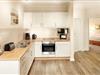 Stueetage: (åbent køkken(kogeplade(Komfur med fire kogeplader, glaskeramisk), elkedel, brødrister, emhætte, kaffemaskine, ovn, opvaskemaskine , køleskab(+ fryser)), stue / spisestue(Fjernsyn(fladskærm, parabol), spisebord, sofahjørne, radio, telefon), soveværelse(dobbeltseng, Fjernsyn), badeværelse(badekar, bruser, håndvask, toilet, føntørrer), toilet(håndvask, toilet)) Kælderetage: (soveværelse(dobbeltseng, Fjernsyn)) tørretumbler(deles med andre gæster, betalt), sauna(deles med andre gæster), vaskemaskine(deles med andre gæster, betalt), terrasse, havemøbler, parkering, swimmingpool(deles med andre gæster, indendørs), fitnessapparater(deles med andre gæster), Vaskeripakke inkl.