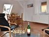 - Wohnzimmer mit Schlafcouch (Breite 1,40 m) und Essbereich, Fernseher und Radio