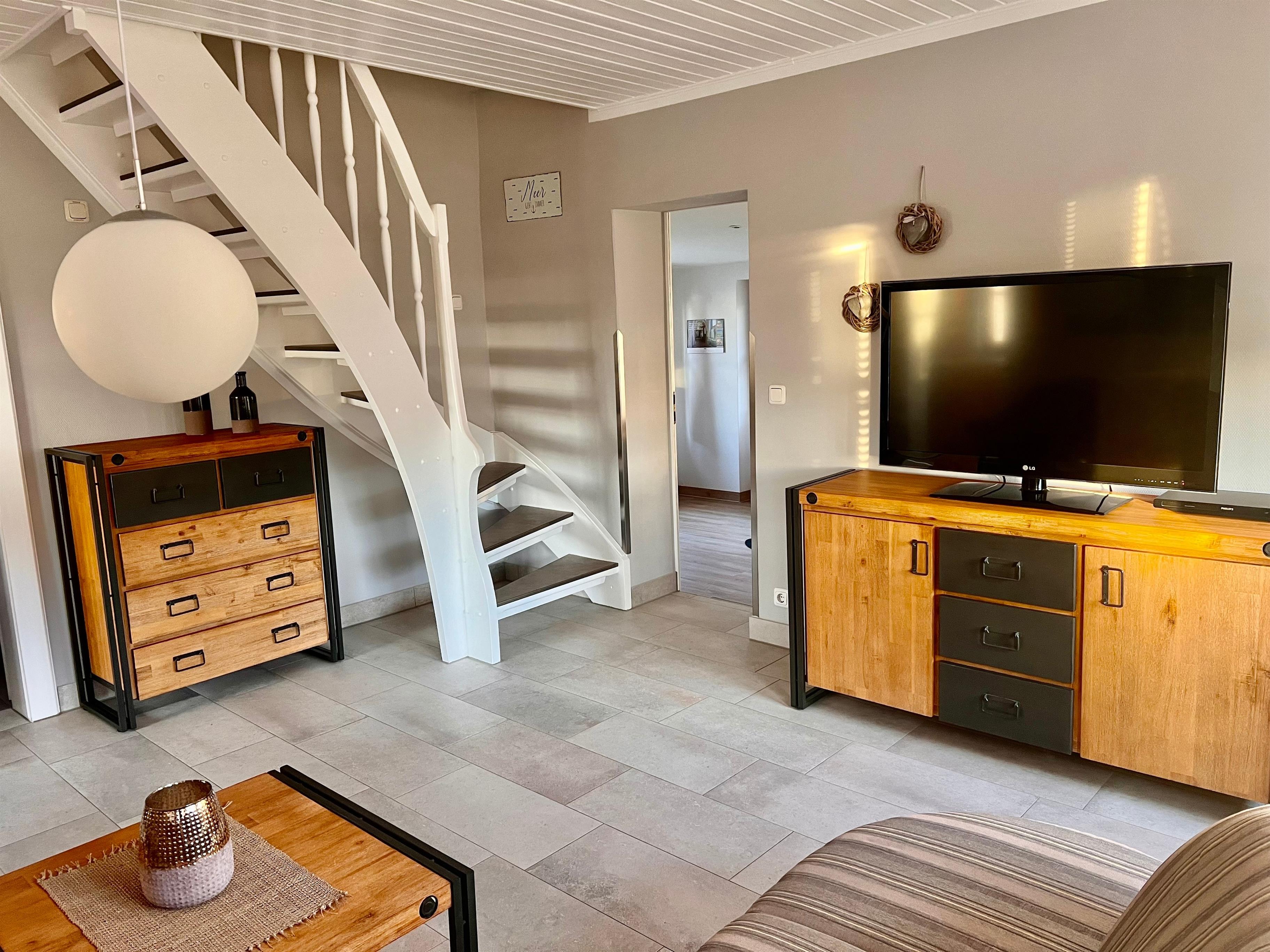 In der oberen Etage befinden sich die Schlafräume. Im unteren Bereich des Hauses befinden sich die Einbauküche mit Geschirrspüler, das Bad mit Dusche, WC und Waschmaschine (über Münzautomat), das Wohnzimmer mit Sat-TV und DVD-Player sowie das Esszimmer.