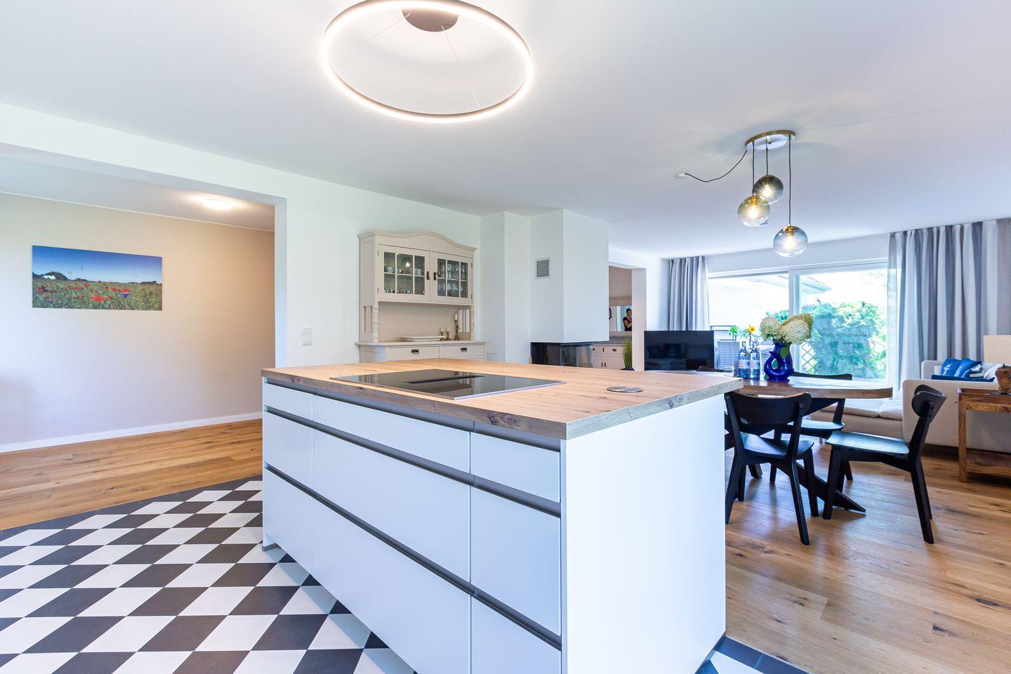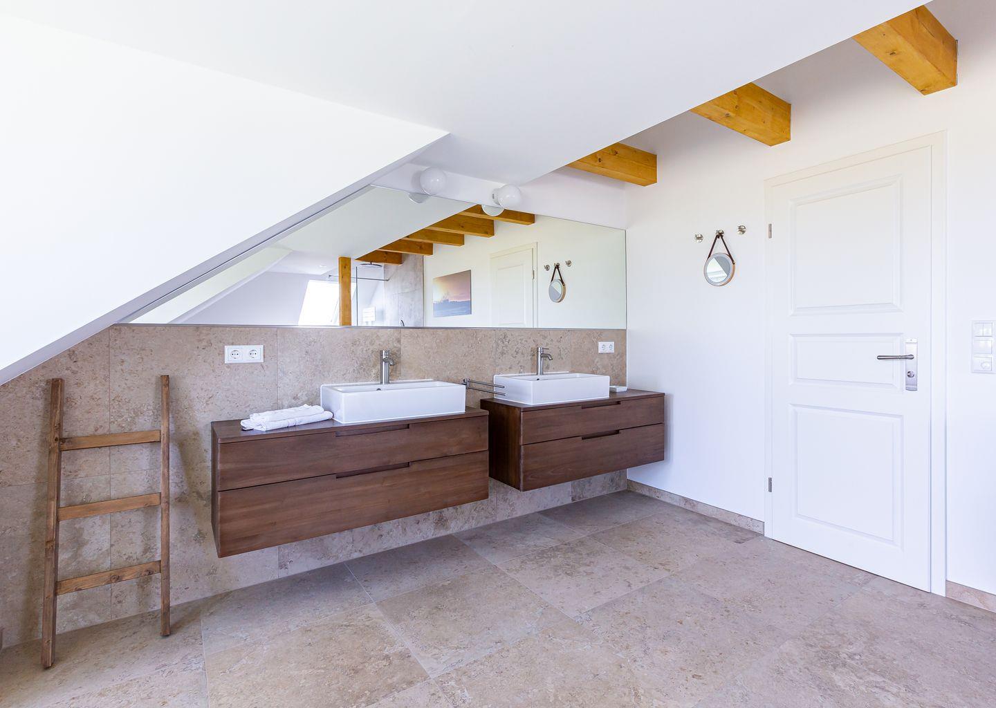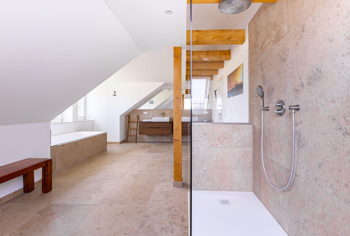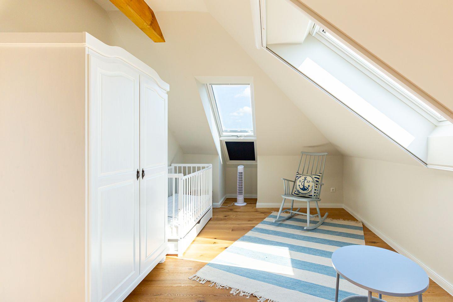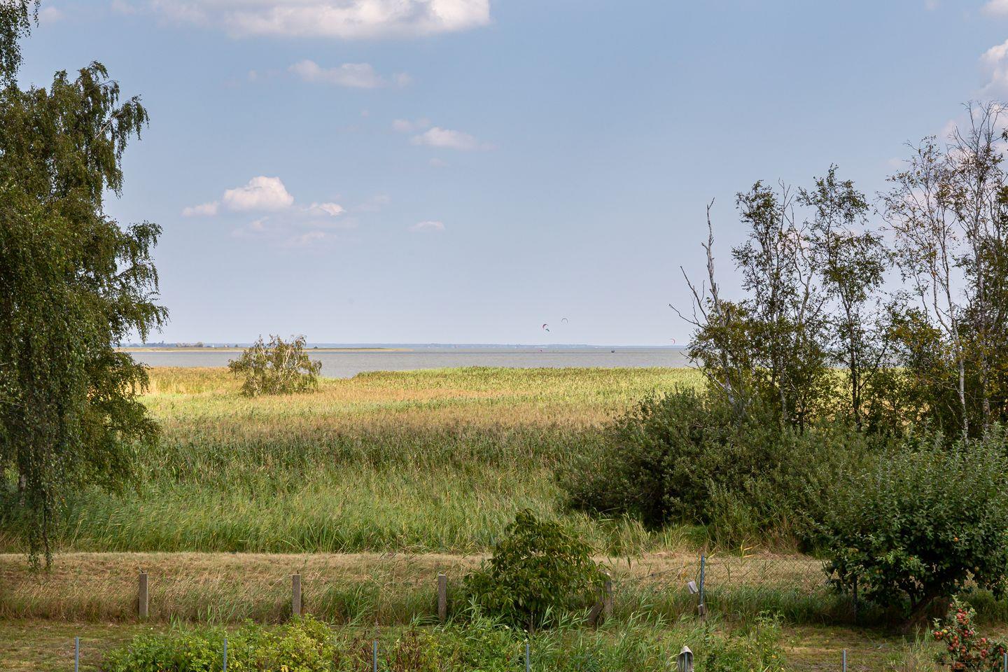 Willkommen in deinem ganz persönlichen Rückzugsort. In Eenhoorn erwartet dich hochwertiges Interieur, das Stil und Komfort perfekt miteinander verbindet. Die offene Küche ist das Herzstück des Hauses und lädt dazu ein, gemeinsam zu kochen und gesellige Stunden am großen Esstisch zu verbringen. Im Wohnzimmer befindet sich ein gemütliches Sofa, auf dem du dich am Abend vor dem knisternden Kamin entspannen kannst. Das Erdgeschoss beherbergt außerdem ein urgemütliches und liebevoll eingerichtetes Schlafzimmer sowie ein erstes Duschbad. In der oberen Etage erwarten dich zwei weitere heimelige Schlafzimmer - eins mit Doppelbett und eins mit getrennten Betten, dass sich sehr gut als Kinderzimmer nutzen lässt. Kleiderschränke, Verdunklungsmöglichkeiten und Insektenschutz an den Fenstern sorgen zudem für einen erholsamen Schlaf. Ein echtes Highlight: Das Traumbad mit einer Badewanne, von der du einen atemberaubenden Blick auf den Bodden genießt. Die große Regendusche und das stylische Sofa im Bad machen diesen Ort zu einer Wohlfühloase und runden das Luxus-Feeling perfekt ab.