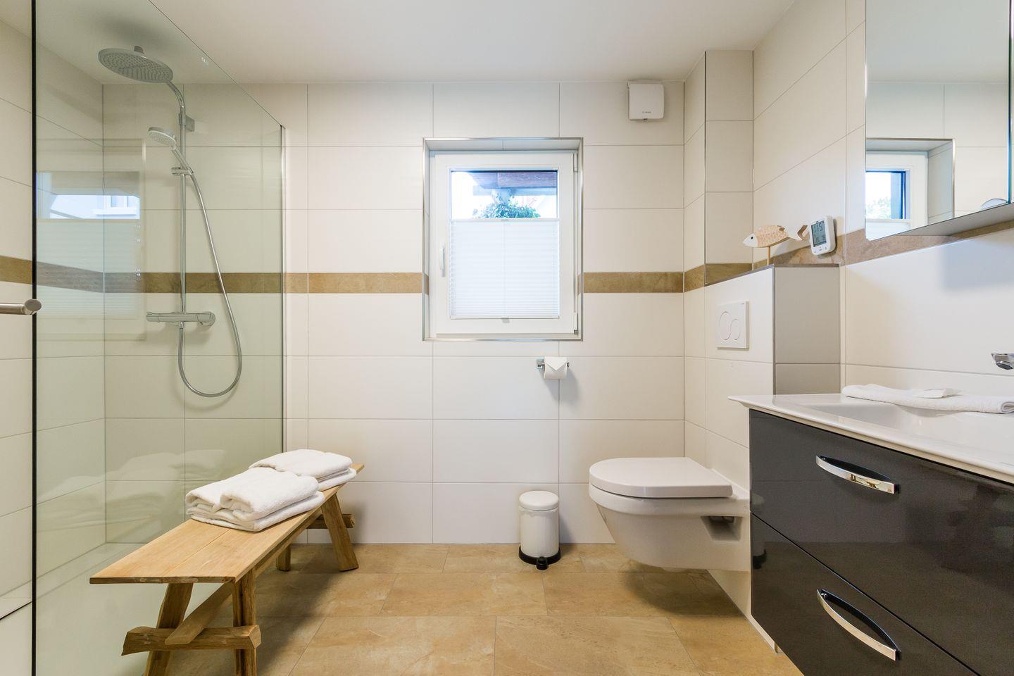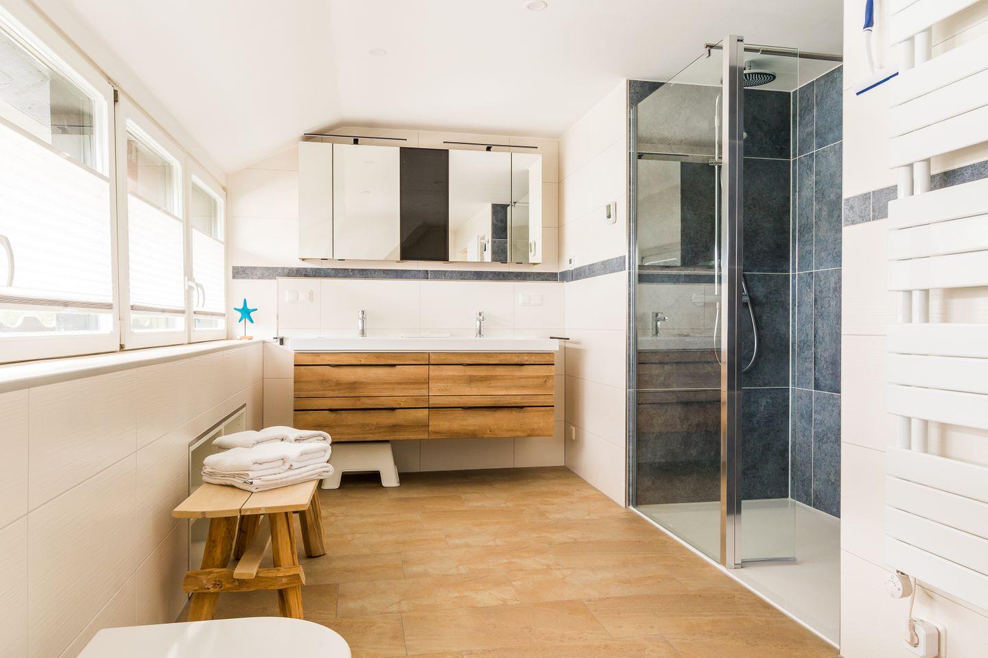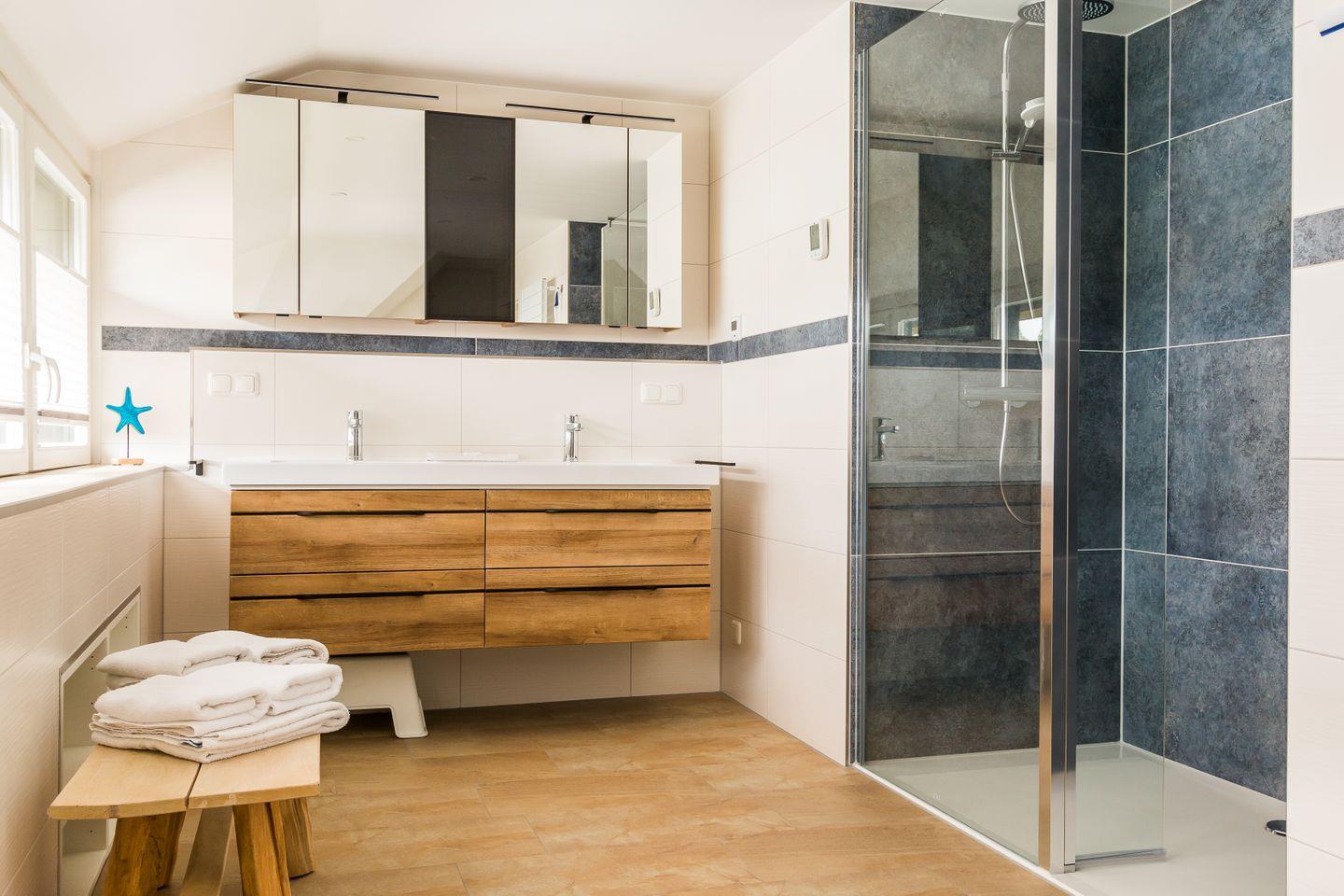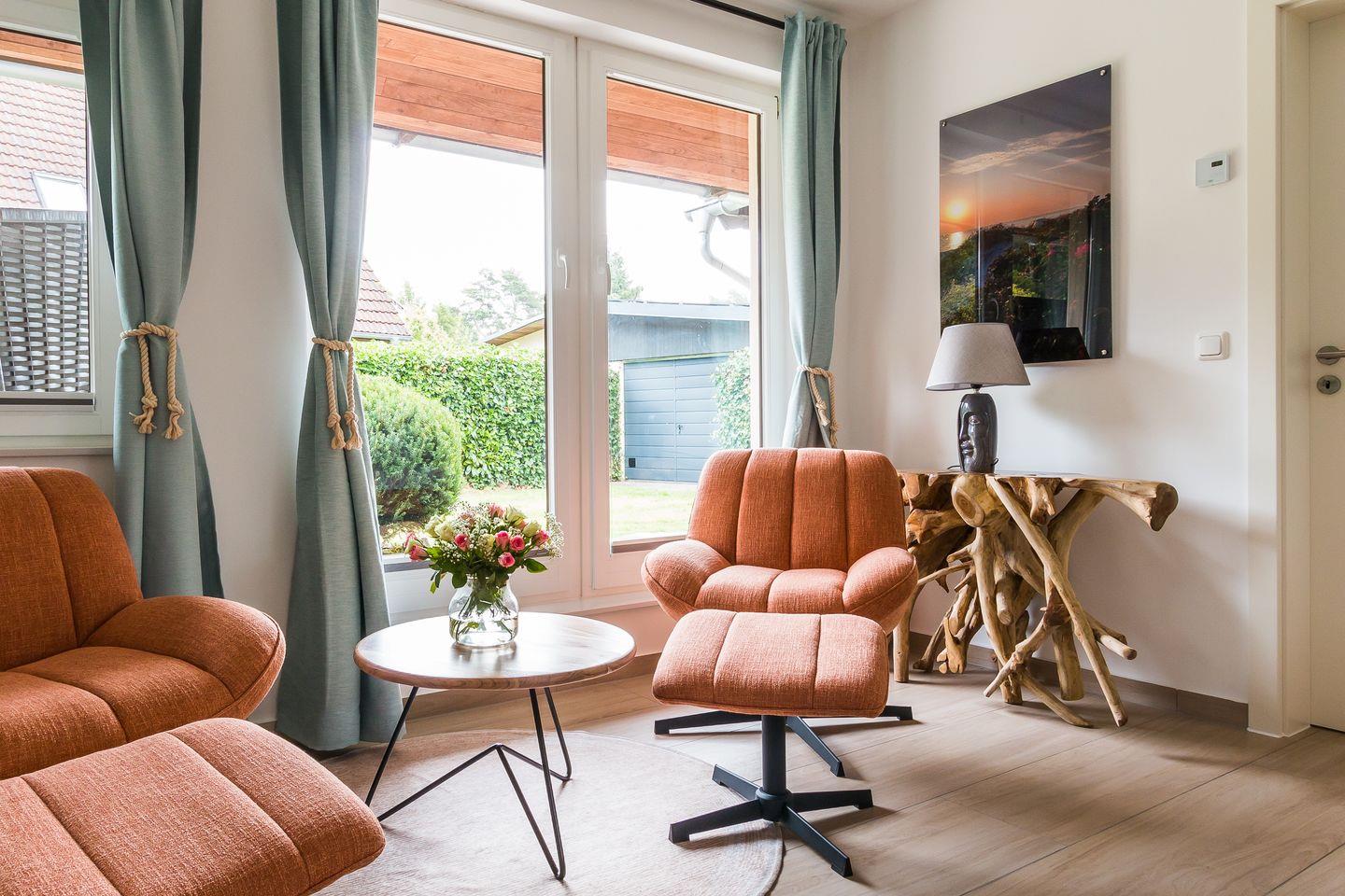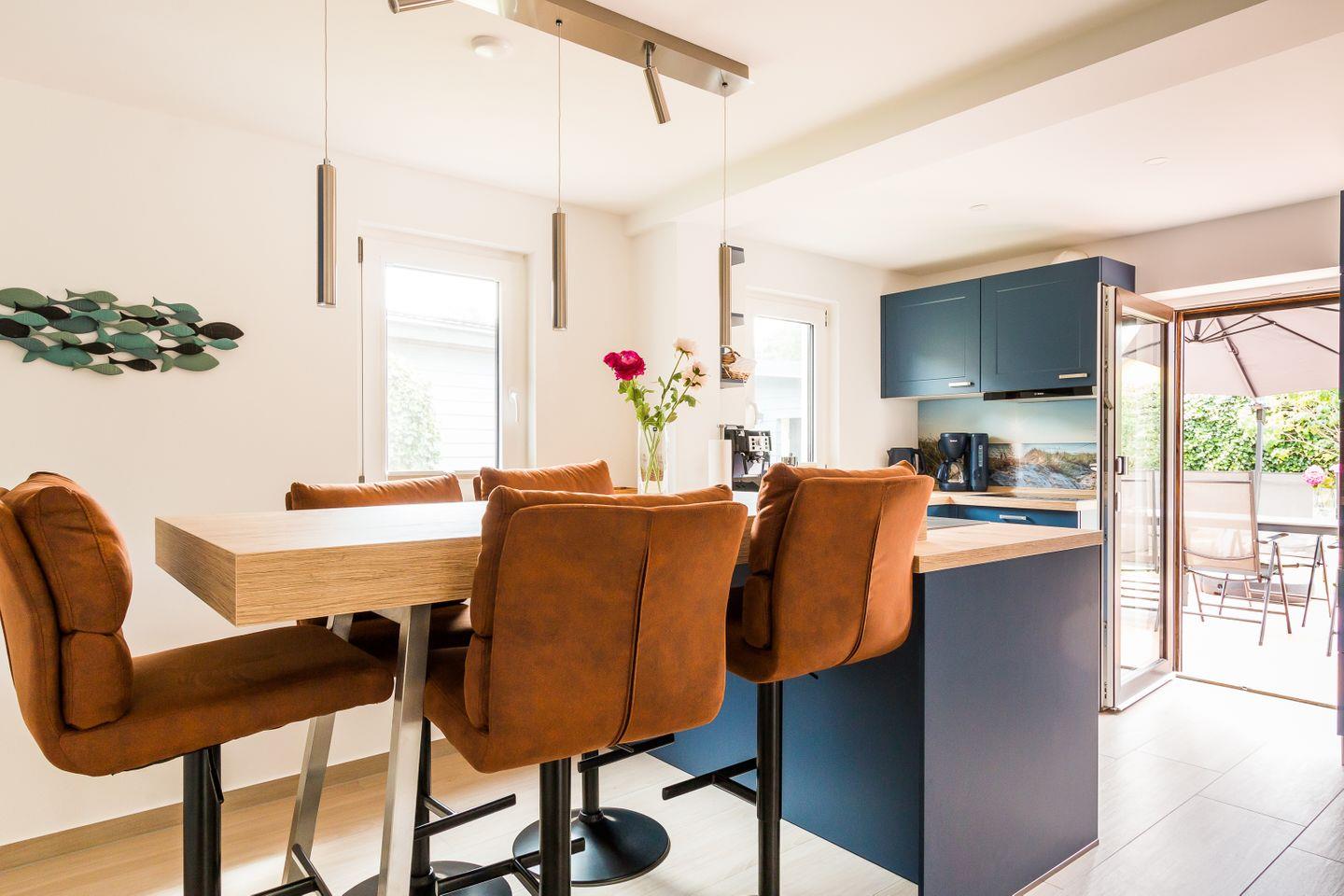 Das Herzstück des Hauses ist der helle, großzügige Wohnbereich mit offener Küche. Modern, top ausgestattet und einfach perfekt für's lange Frühstück, das gemeinsame Lieblingsessen oder einen Filmabend mit Netflix und Co. Von der Küche aus geht’s auch direkt auf die erste von vier Terrassen. Auf dem großen Grundstück gibt es Platz zum Sonnen, Toben, Spielen oder Entspannen. Für die Kleinen warten außerdem noch Sandkästen, für die Großen bequeme Sitzecken zum Durchatmen. Weiteren Komfort bieten auch die zwei stylischen, geräumige Bäder. Die Duschen sind so groß, dass die ganze Familie locker drunter passt. Und das Beste: Auch euer vierbeiniger Liebling ist hier herzlich willkommen.