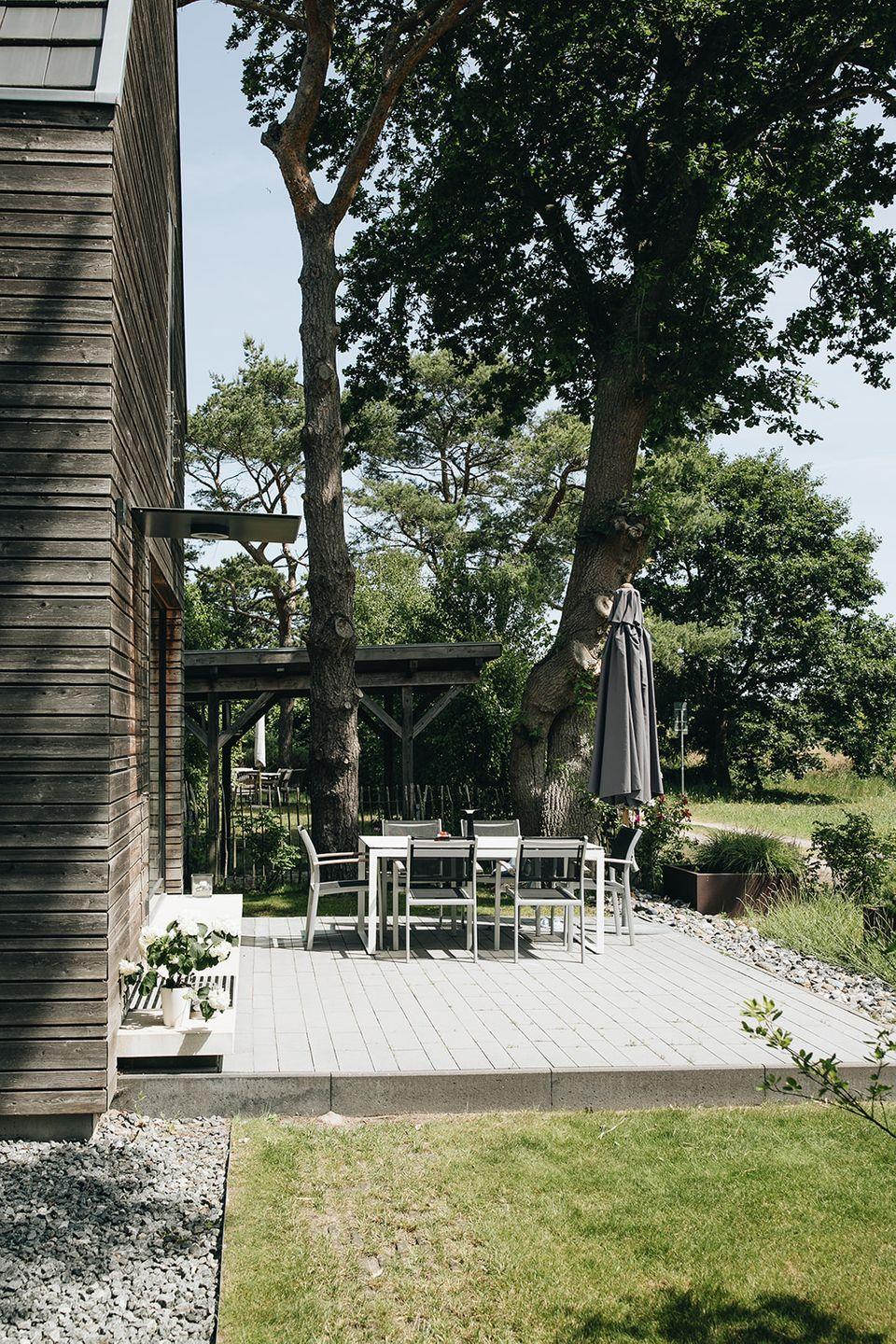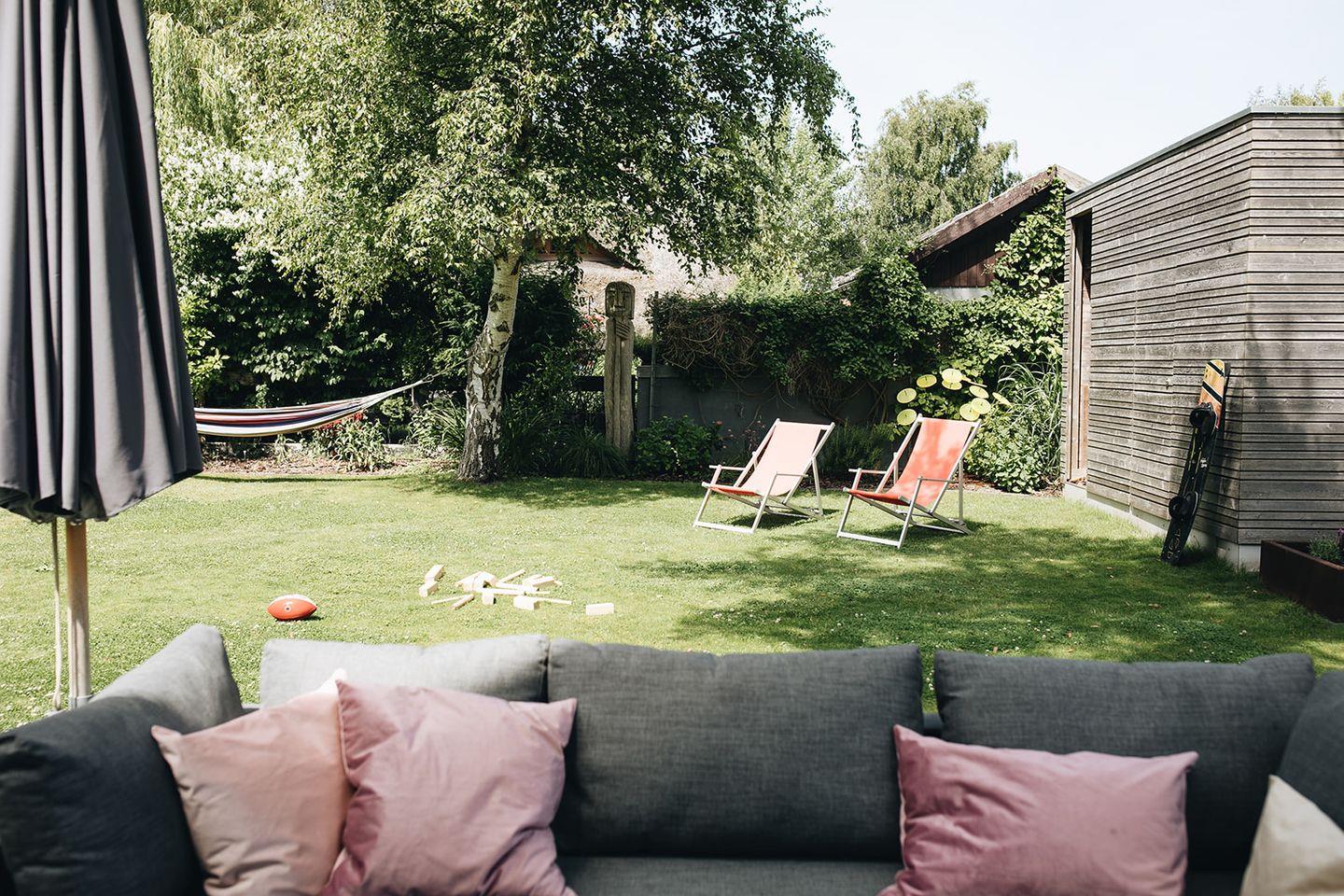 Der liebevoll angelegte Garten mit Ost- und Westterrasse erweitert den Wohnraum ins Freie. Hier findet sich zu jeder Tageszeit ein sonniger oder schattiger Platz – vom Frühstück im Morgenlicht bis zum Abend in warmem Sonnenuntergang.