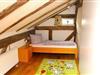 Der Zugang zu dem sich unter der Dachschräge befindenden heimeligen Kinderzimmer ist mit einer Schiebetüre versehen. Im Einzelbett der Größe von 90 cm x 200 fühlt man sich geborgen. Im Kinderkleiderschrank befinden sich Spiele und zusätzlicher Platz für Ihre mitgebrachte Kleidung. Am Tisch mit TrippTrapp-Stühlen können Kinder z. B. malen oder basteln, der Tisch kann aber auch als Erweiterung für den Esstisch benutzt werden.
