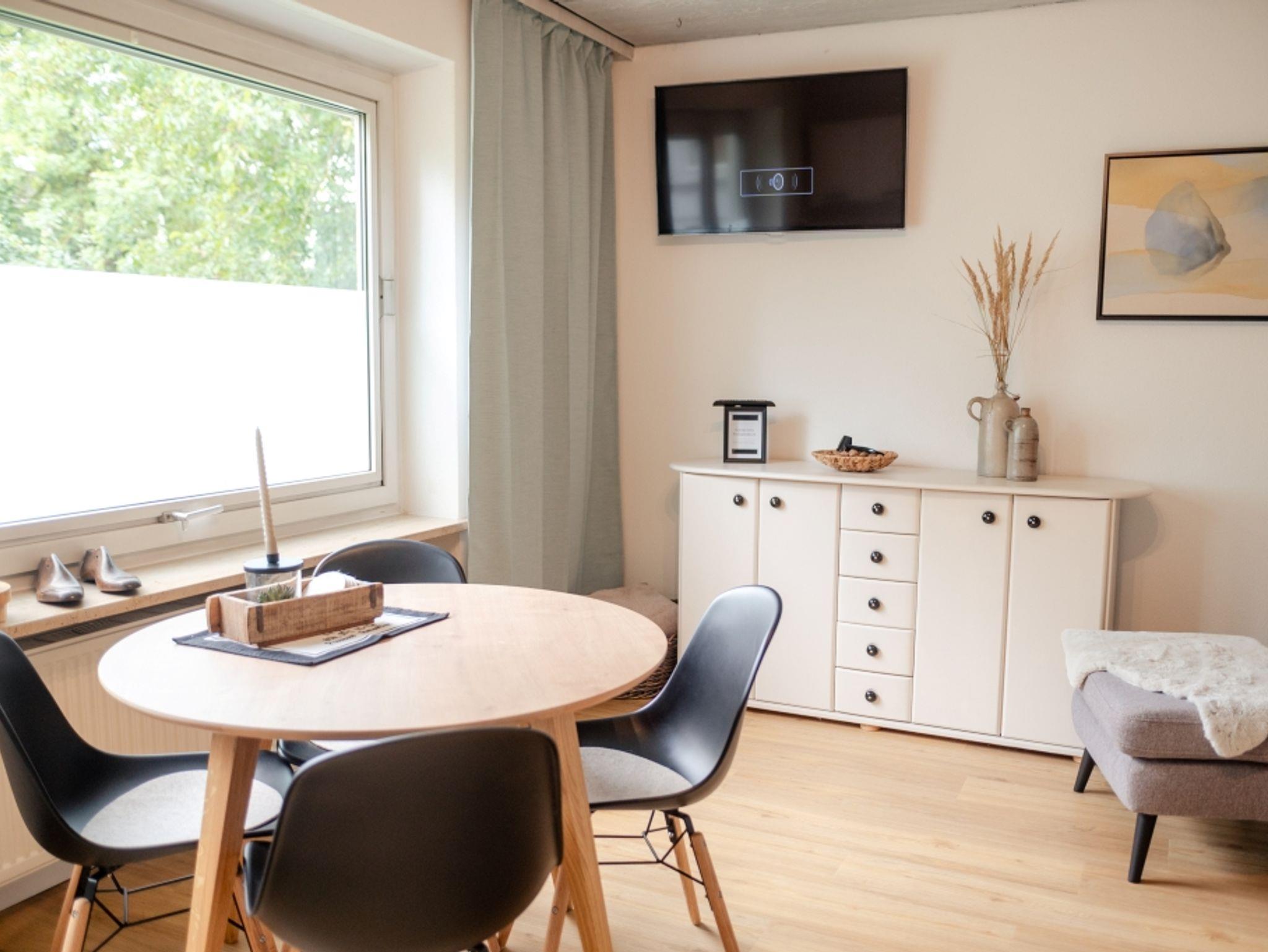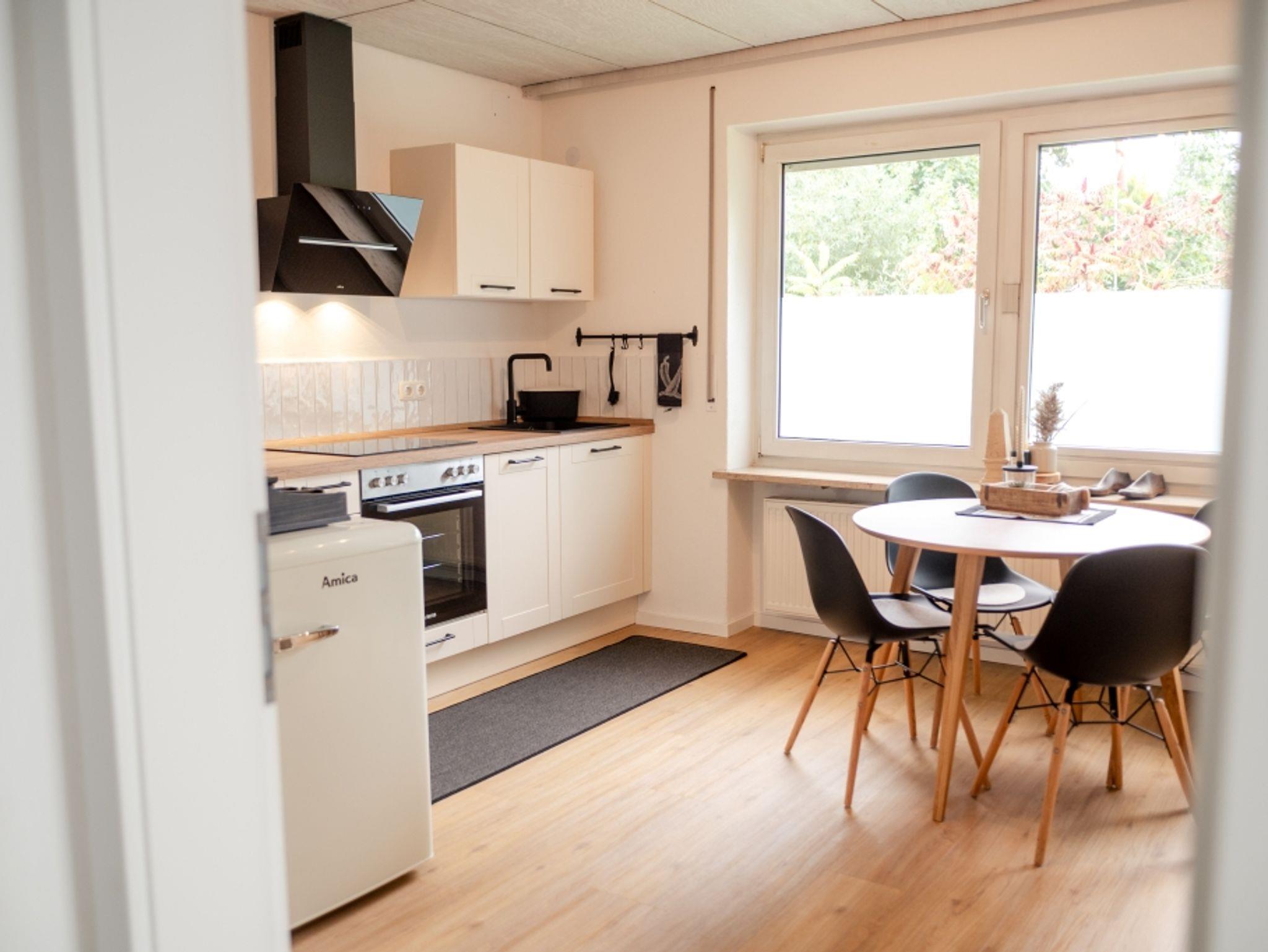 Unsere freundliche Ferienwohnung bietet ein charmantes Ambiente und alles, was Sie für einen erholsamen Aufenthalt benötigen. Die Wohnung verfügt über einen offenen Wohn- und Essbereich mit integrierter voll ausgestatteter Küche, ideal zum gemeinsamen Kochen, Essen und Entspannen.