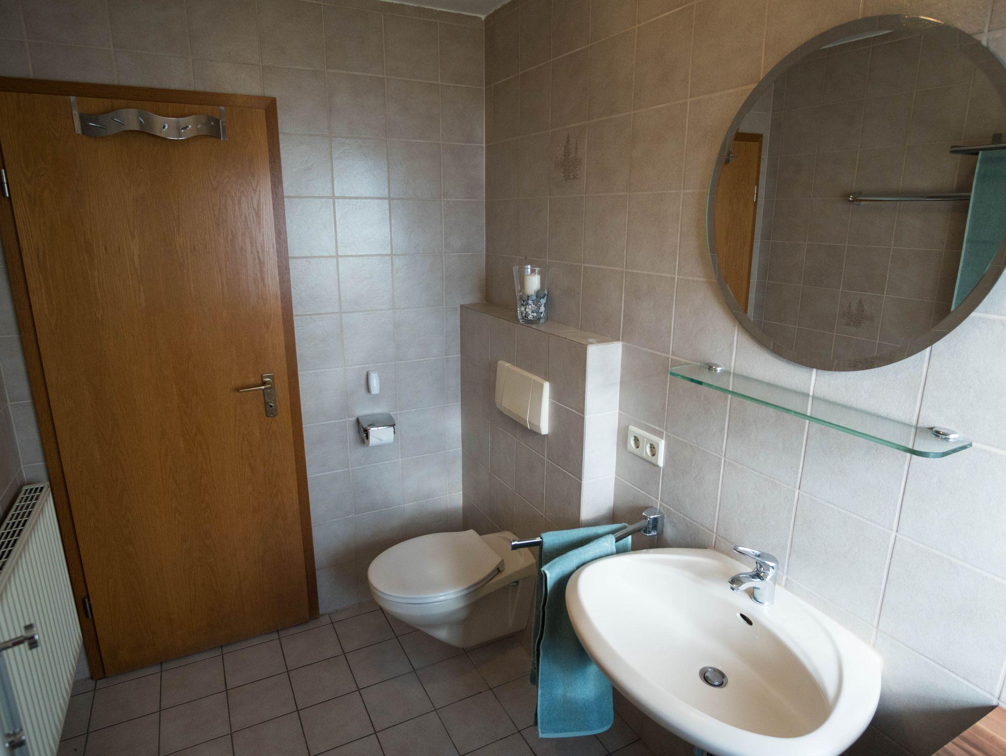 WC, Dusche, Fön, Handtücher, Waschbecken
