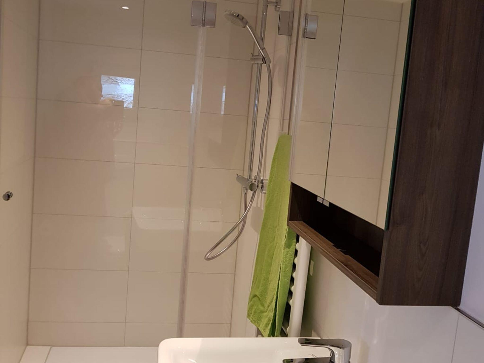 Küchenausstattung: 2 Herdplatten, Kühlschrank mit Gefrierfach, Kaffeevollautomat, Wasserkocher, Toaster,