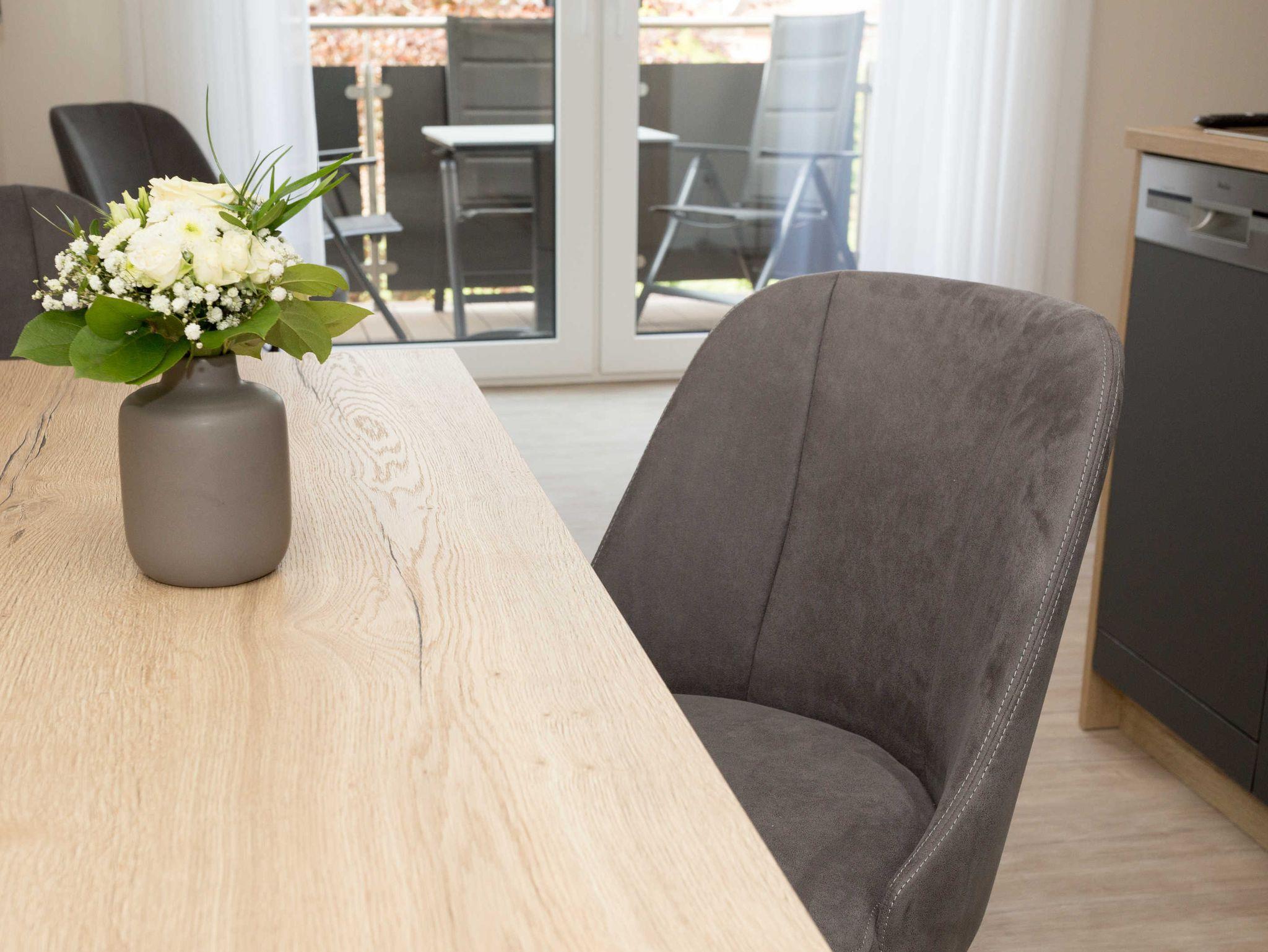 Das Apartment befindet sich im Erdgeschoss. Sie haben eine eigene Terrasse auf der Sie entspannen können. Im Wohnbereich ist ein Schlafsofa vorhanden, welches eine Liegefläche von 150 x 200 cm bietet.