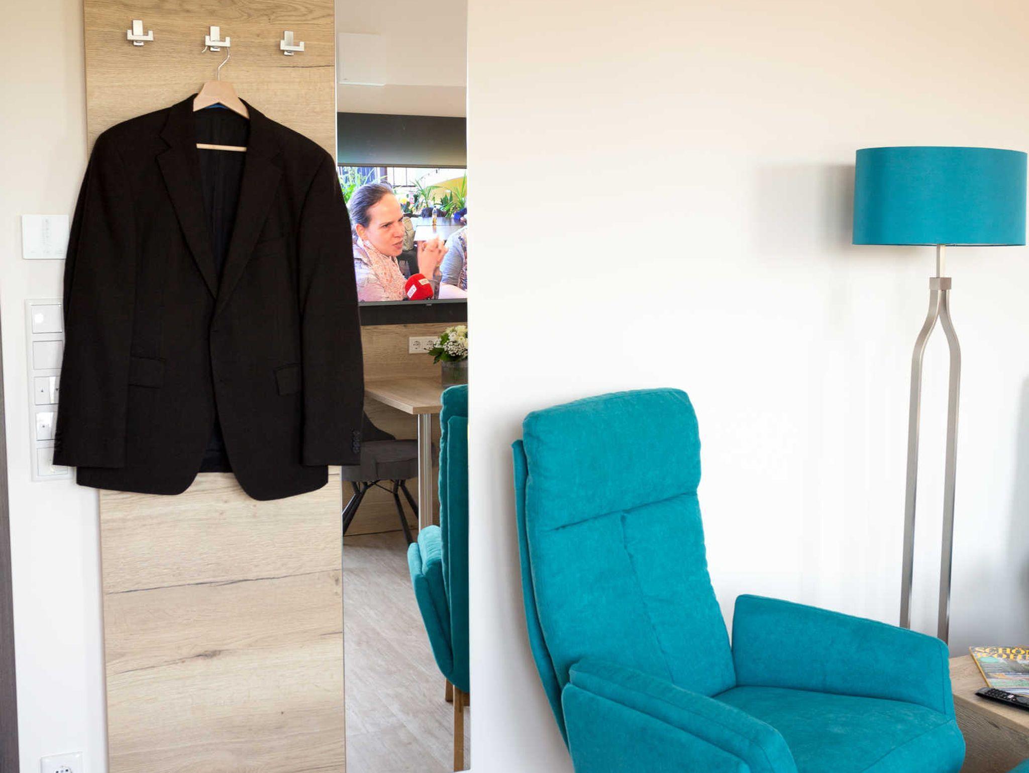Das Apartment befindet sich im 2. Obergeschoß. Sie haben eine Dachterrasse mit einer Hängeliege in der Sie sich entspannen können.