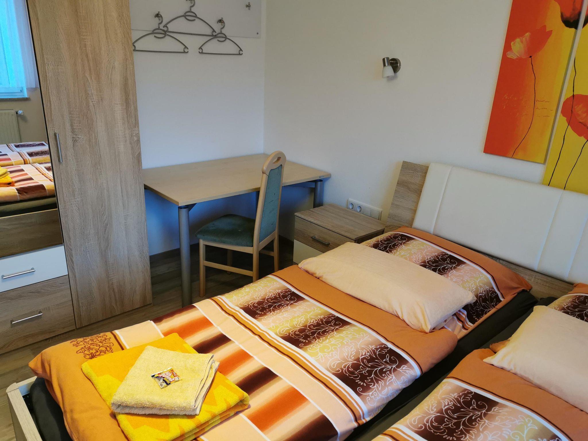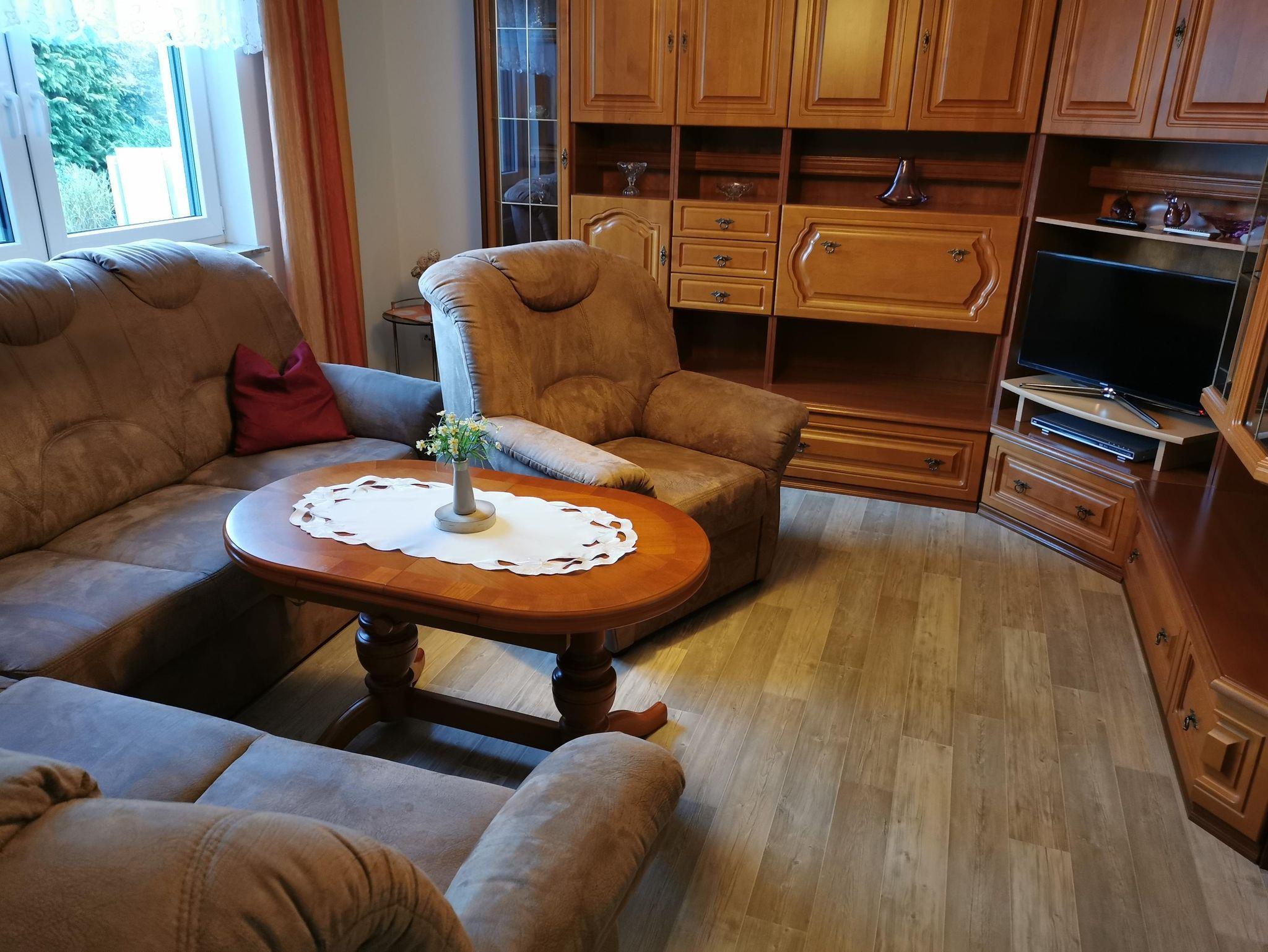 Die neugebaute Ferienwohnung mit ca. 60qm verfügt über eine Küche mit integriertem Eingangsbereich. (Kühlschrank, Mikrowelle, Herd mit Backofen, Kaffeemaschine, Wasserkocher, Spülmaschine) Das Badezimmer bietet eine edle bodenebene Glasdusche mit Regenfallfunktion, Waschbecken, WC. Das Wohnzimmer mit Sofa inkl. Schlaffunktion für 2 Personen und Fernseher inkl. DVD-Player lädt zum Verweilen ein. Das Schlafzimmer verfügt über ein 1,80m x 2,00m großes Doppelbett und ein Einzelbett 0,90mx2,00m. Außerdem besteht die Möglichkeit 1 Babybett aufzustellen. Elektrische Rollläden und Fussbodenheizung sind in jedem Raum vorhanden.