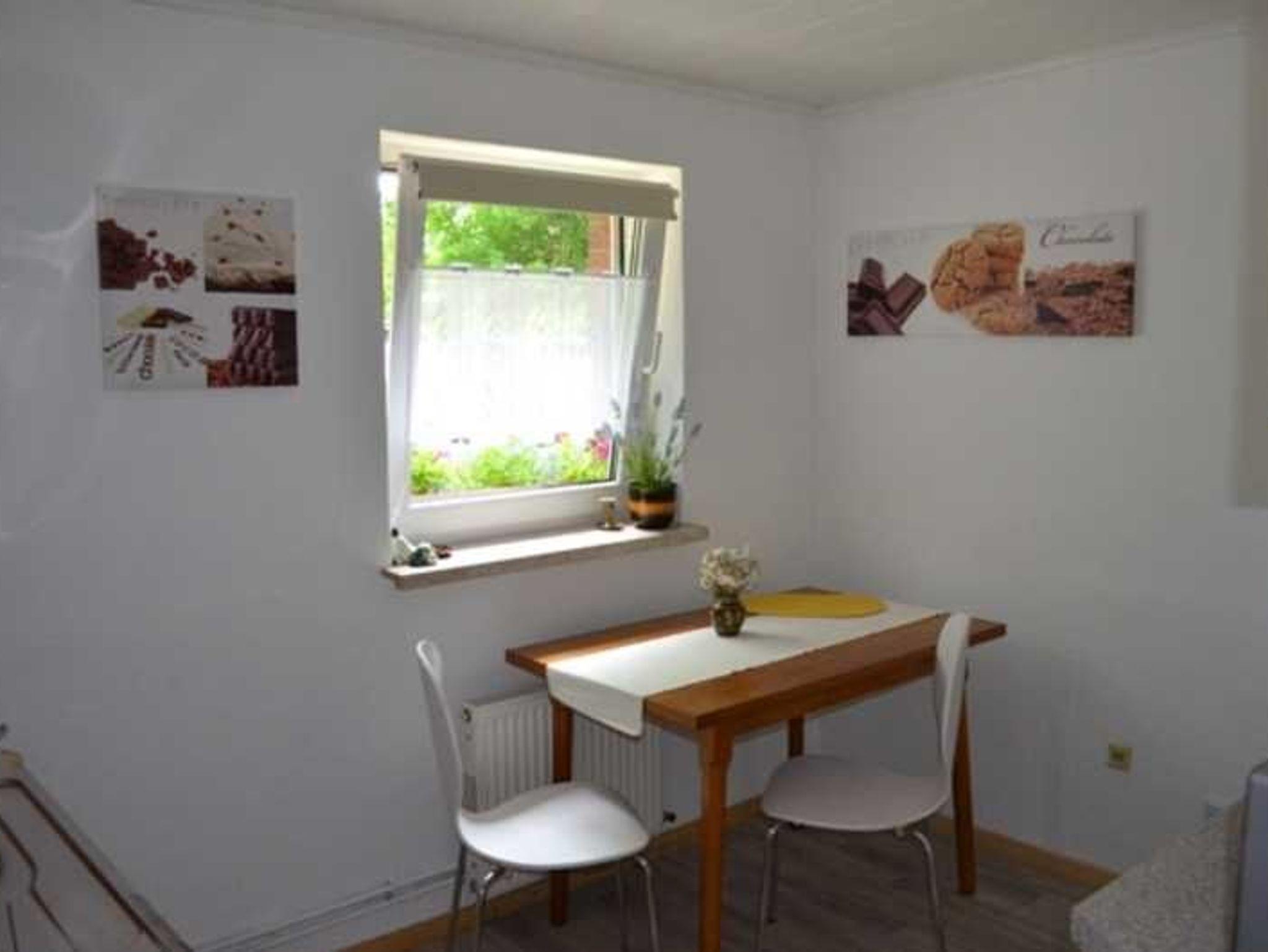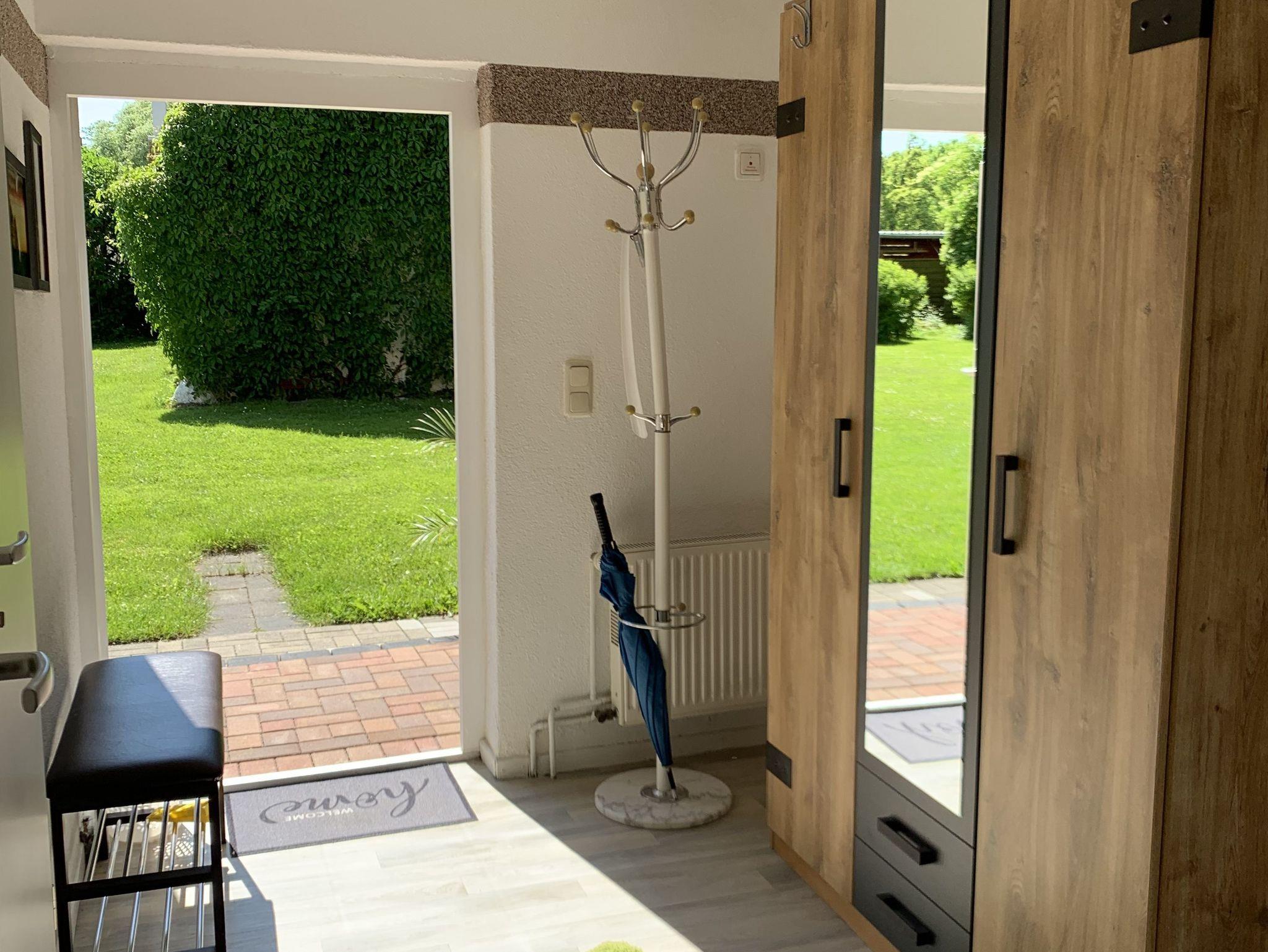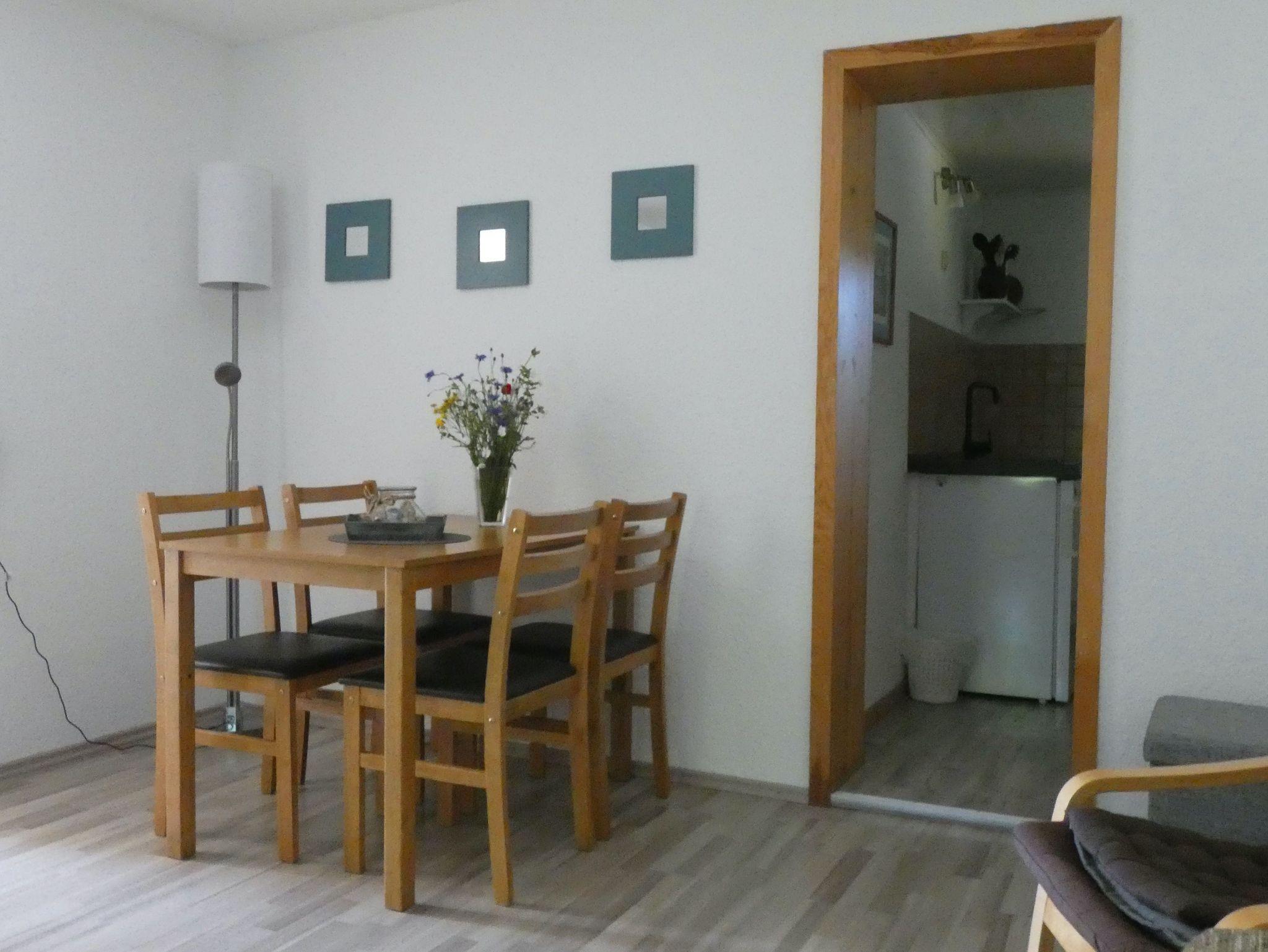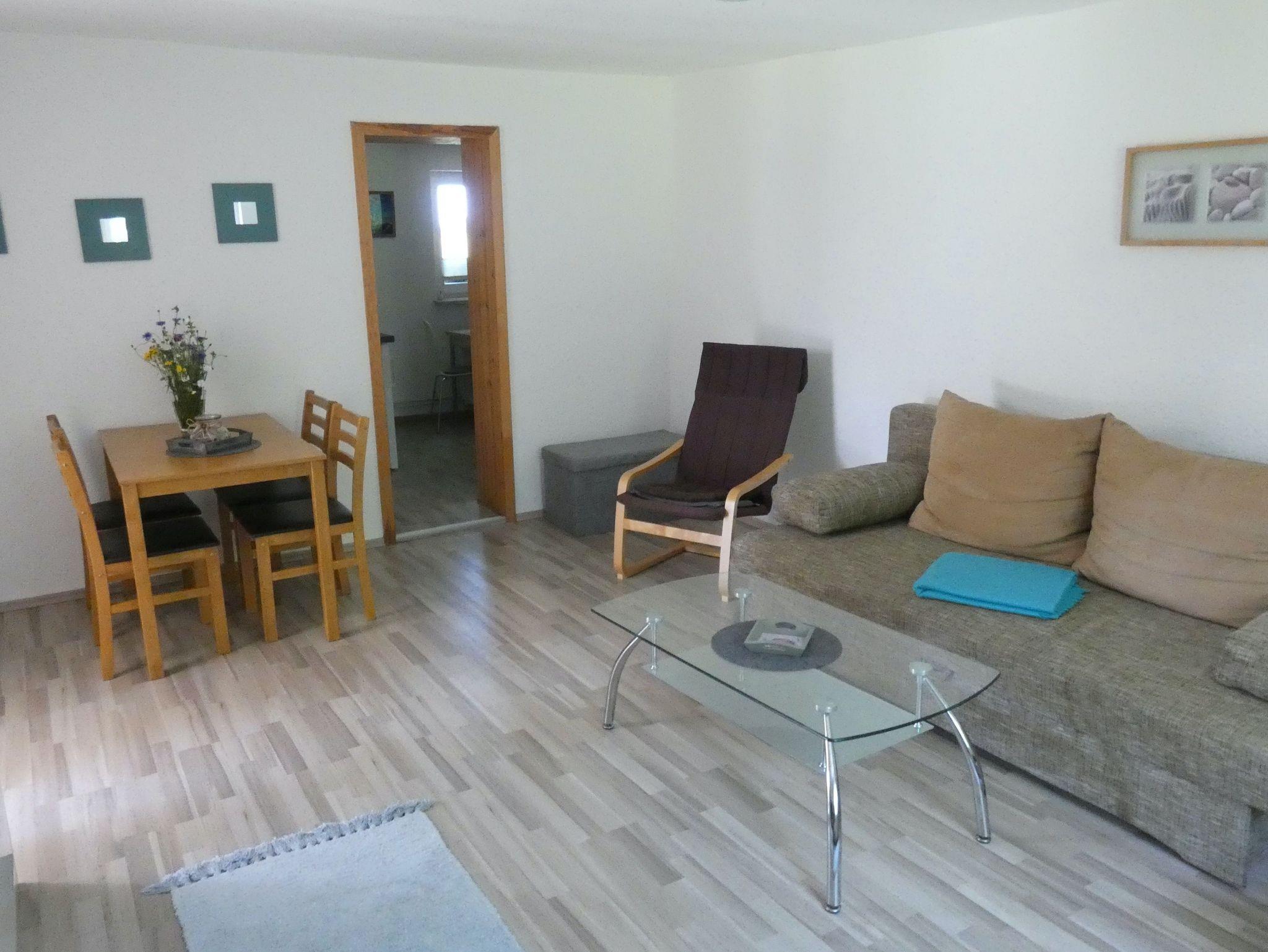 Die Ferienwohnung ist ca.60qm groß und hat einen separaten Eingang vom Vermietereingang. Die Wohnung ist aufgteilt in einem Wohnzimmer mit einer Doppelbettcouch, Schlafzimmer und Bad mit Dusche.