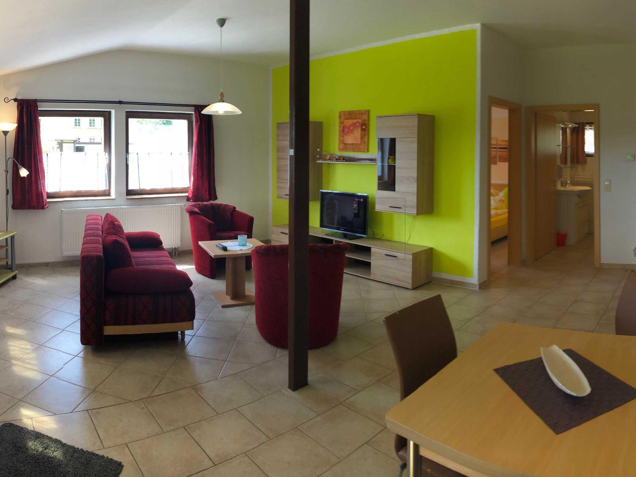 FH 1 Schlafz., großes Wohnzimmer mit Doppelbettsofa, TV, Terrasse , Küchenz. Gartenmö ,Blick auf See, Terrasse, Parkplatz