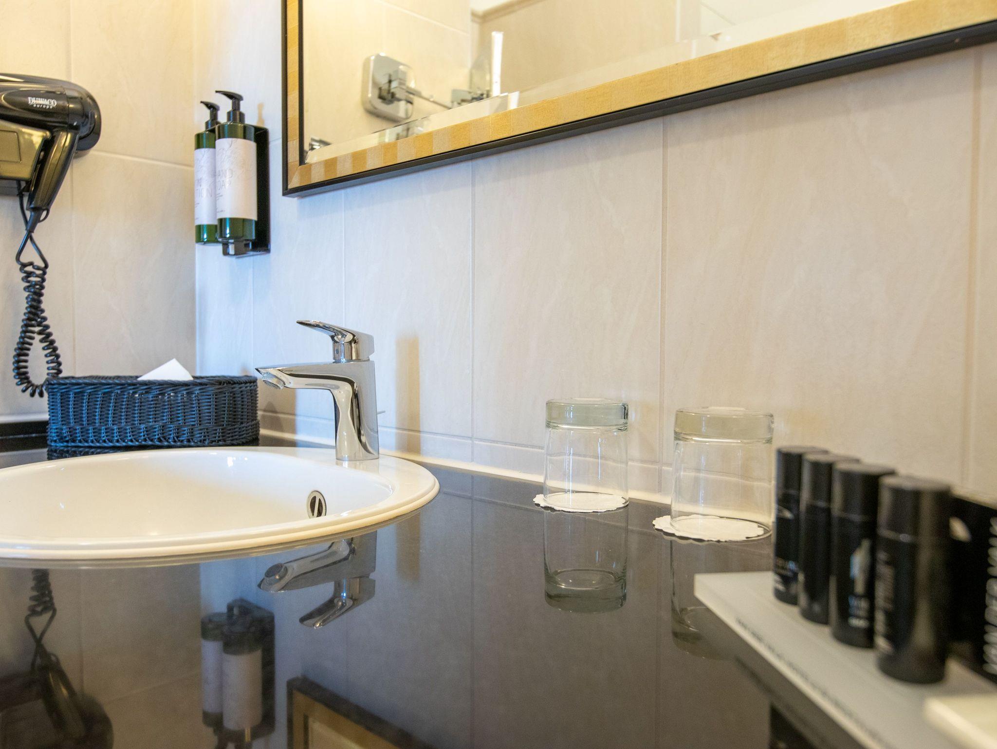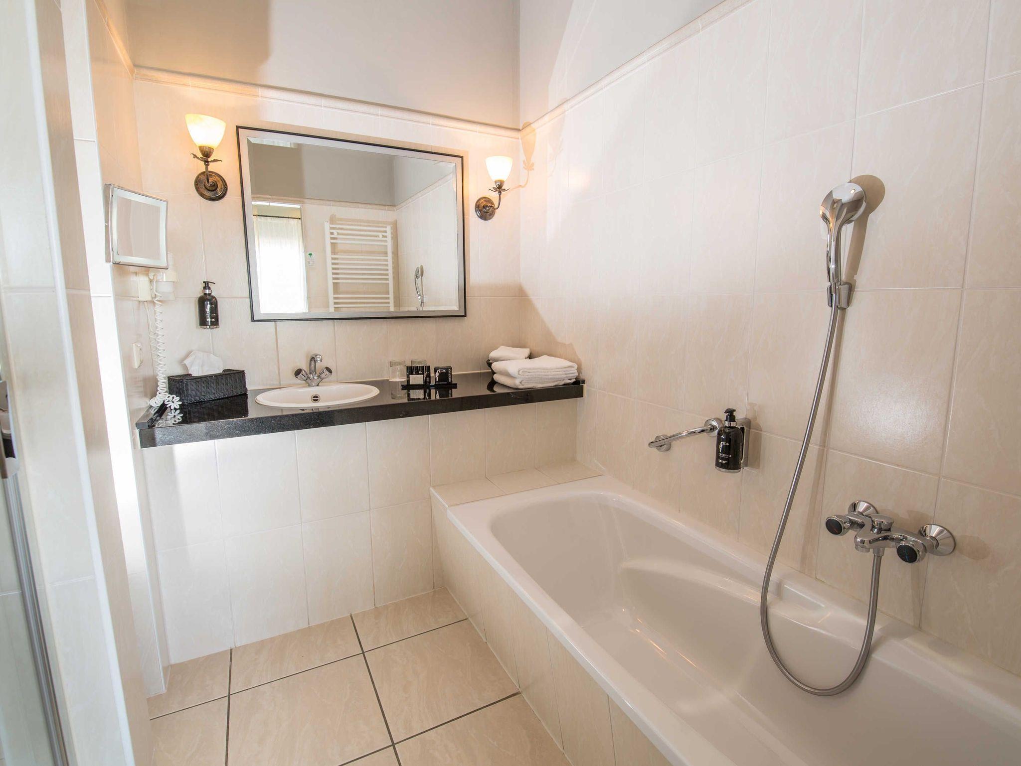 Das Bad bietet dir eine geräumige Dusche, eine Badewanne und einen Haartrockner, sodass es dir an nichts fehlt. Ob du dich nach einem Tag voller Meetings oder nach einem Ausflug in die idyllische Umgebung erfrischen möchtest, hier findest du die passende Wohlfühlatmosphäre. Einige Zimmer sind zusätzlich mit einem Balkon ausgestattet, auf denen du die Ruhe und den Ausblick in die Natur genießen kannst.