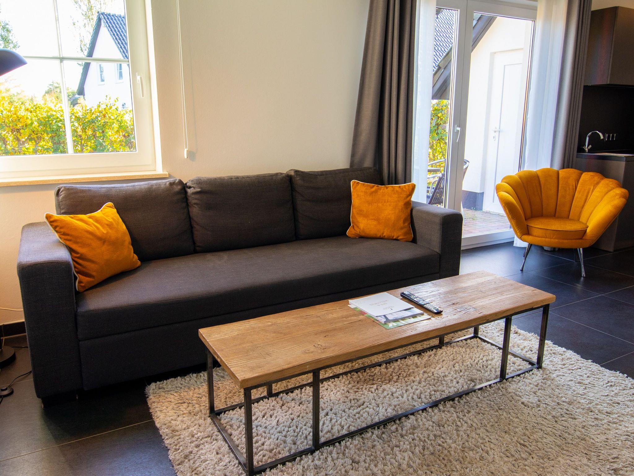 Mit ihren 40 m² bieten die Ferienwohnungen im Van der Valk Resort Linstow viel Raum für erholsame Tage. Auf zwei Etagen verteilt, findest du hier alles, was du für einen komfortablen Urlaub brauchst. Im Erdgeschoss befindet sich das offene Wohnzimmer mit einem Schlafsofa, auf dem du nach einem langen Tag entspannen kannst. Ein TV sorgt für Unterhaltung, während die praktische Pantry-Küche mit 2-Platten-Herd, Mikrowelle, Kühlschrank, Spülmaschine und Kaffeemaschine alles bereithält, um dich kulinarisch zu verwöhnen. Egal, ob du dir nur einen Kaffee machst oder ein schnelles Frühstück zauberst ? du hast alles griffbereit. Das Obergeschoss bietet dir ein gemütliches Schlafzimmer mit einem Doppelbett (180x200), in dem du dich erholen kannst. Hier findest du auch das moderne Badezimmer mit Dusche ? alles für deinen Komfort gestaltet. Die Ferienwohnung verfügt über eine eigene Terrasse, die sich perfekt für entspannte Stunden im Freien eignet. Du kannst auch einen Grill ausleihen und den Tag bei einem gemütlichen Barbecue ausklingen lassen. Haustiere sind hier ebenfalls willkommen, sodass du deine Auszeit in Linstow ganz unbeschwert genießen kannst.