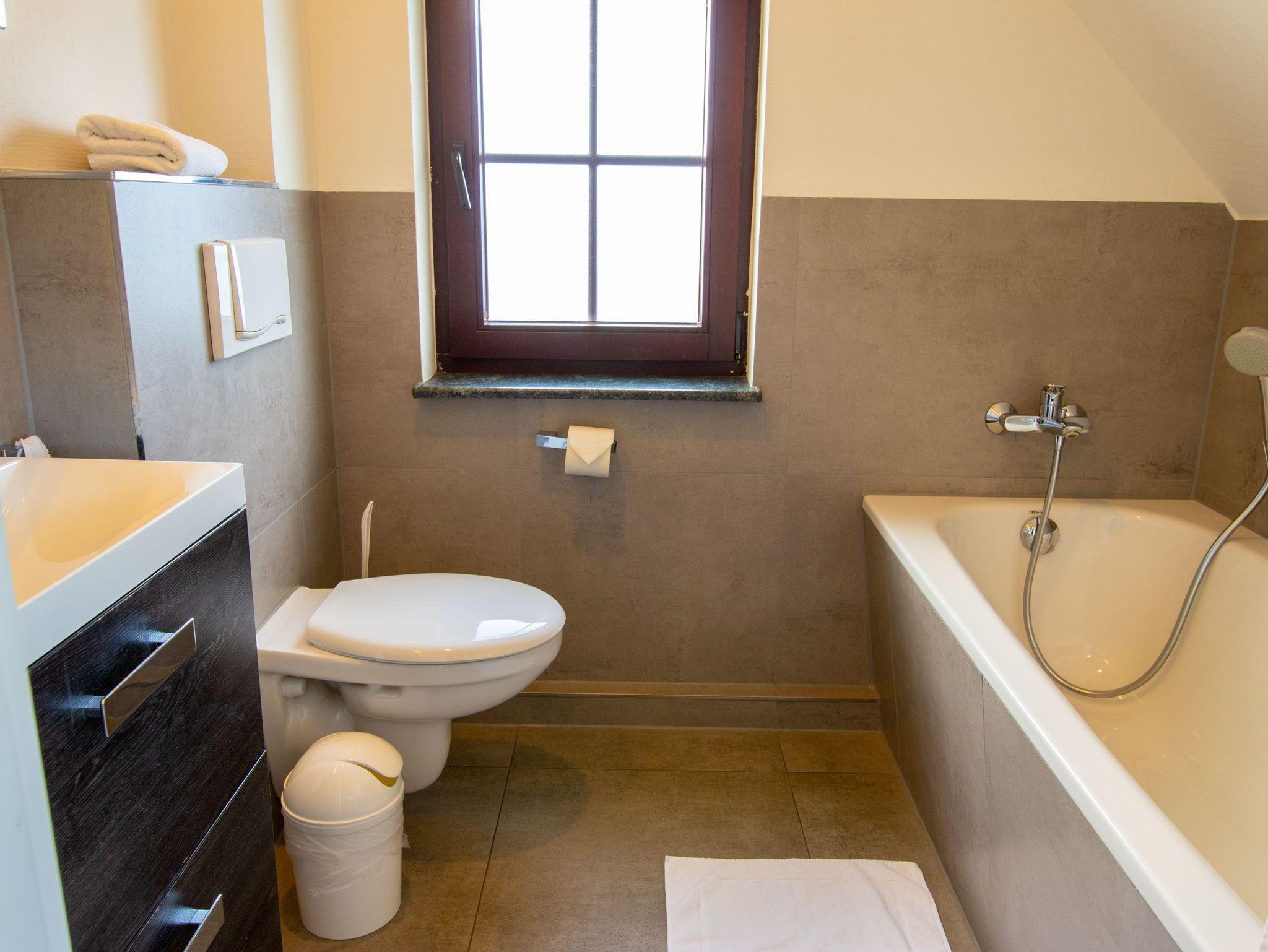 Das Landhaus Typ C ist der ideale Rückzugsort für Familien! Auf 100 m², verteilt über zwei Etagen, ist dieses Haus für bis zu 6 Personen ausgelegt und bietet jede Menge Platz zum Entspannen und Wohlfühlen. Im Erdgeschoss erwartet euch ein gemütliches Wohnzimmer mit einem bequemen Sofa und TV, ideal für gemeinsame Filmabende nach einem abenteuerlichen Tag. Die offene Küche ist voll ausgestattet ? mit Herd, Backofen, Mikrowelle, Kühlschrank und Spülmaschine. So könnt ihr gemeinsam kochen und den Abwasch einfach der Technik überlassen. Für eine schnelle Kaffeepause oder den Tee zwischendurch stehen Kaffeemaschine und Wasserkocher bereit. Das Erdgeschoss bietet zudem ein Schlafzimmer mit Doppelbett (180x200) und eigenem Bad mit Dusche ? ideal für Eltern, die etwas mehr Privatsphäre schätzen. Ein zusätzliches Gäste-WC sorgt dafür, dass morgens alle genug Platz haben, um sich für den Tag fertig zu machen. Im Obergeschoss findet ihr zwei weitere gemütliche Schlafzimmer mit Doppelbetten (180x200) und viel Stauraum. Hier gibt es jeweils ein eigenes Badezimmer mit Badewanne ? perfekt, um nach einem Tag voller Abenteuer mit den Kindern ein entspannendes Bad zu nehmen. Draußen lädt die Terrasse zu gemütlichen Grillabenden ein, und einen Grill könnt ihr euch ganz bequem vor Ort ausleihen. Auch euer Hund ist hier herzlich willkommen, denn im Ferienhaus Typ C ist Platz für die ganze Familie ? inklusive Vierbeiner!