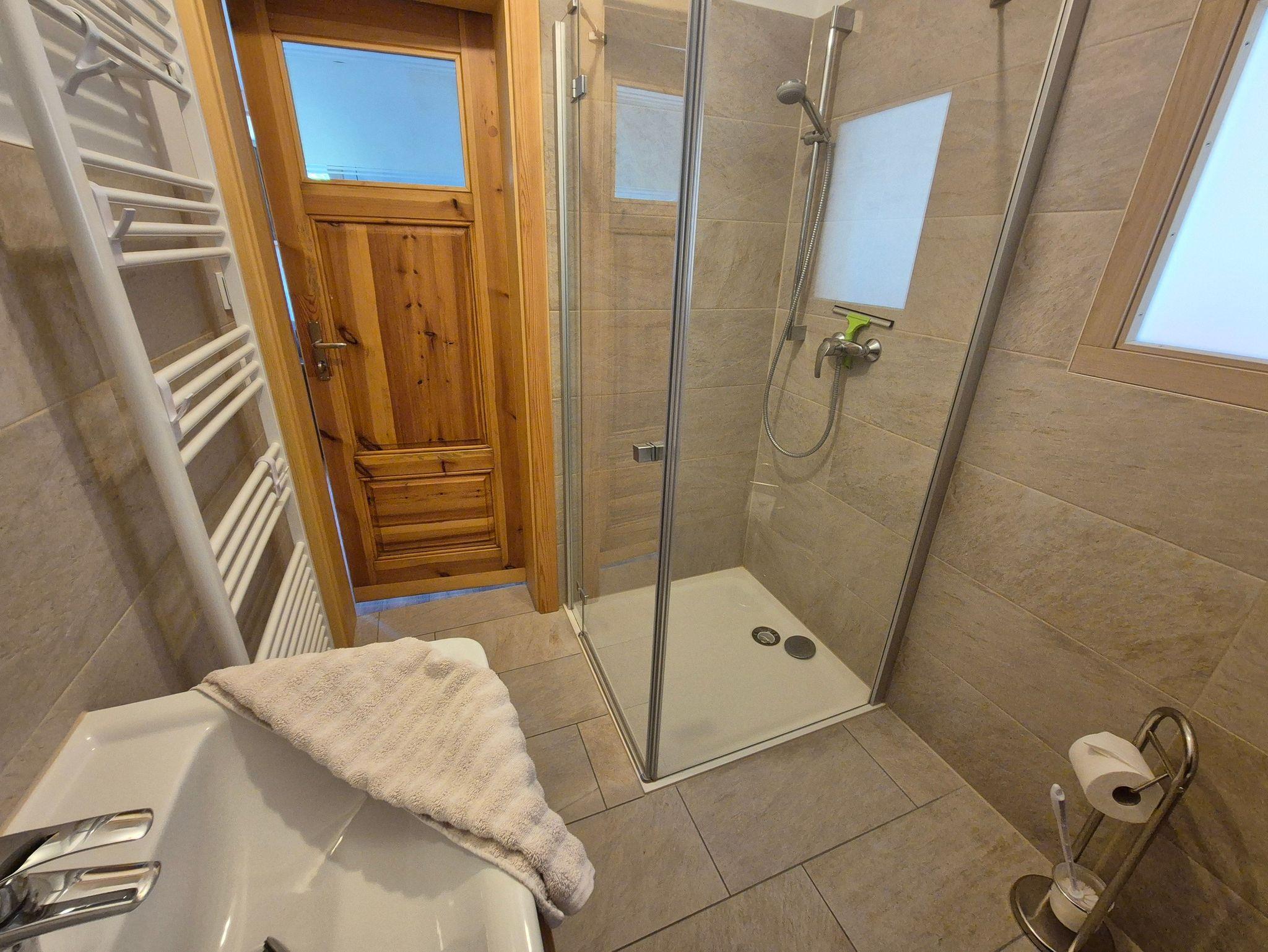 Genießen Sie den großzügigen Wohnbereich mit moderner Einbauküche, zwei gemütlichen Schlafzimmern (eins mit Doppelbett, eins mit zwei Einzelbetten), ein helles Bad mit Dusche sowie ein zusätzliches Gäste-WC. Vom Balkon aus blicken Sie entspannt ins Grüne und lassen den Tag ausklingen.