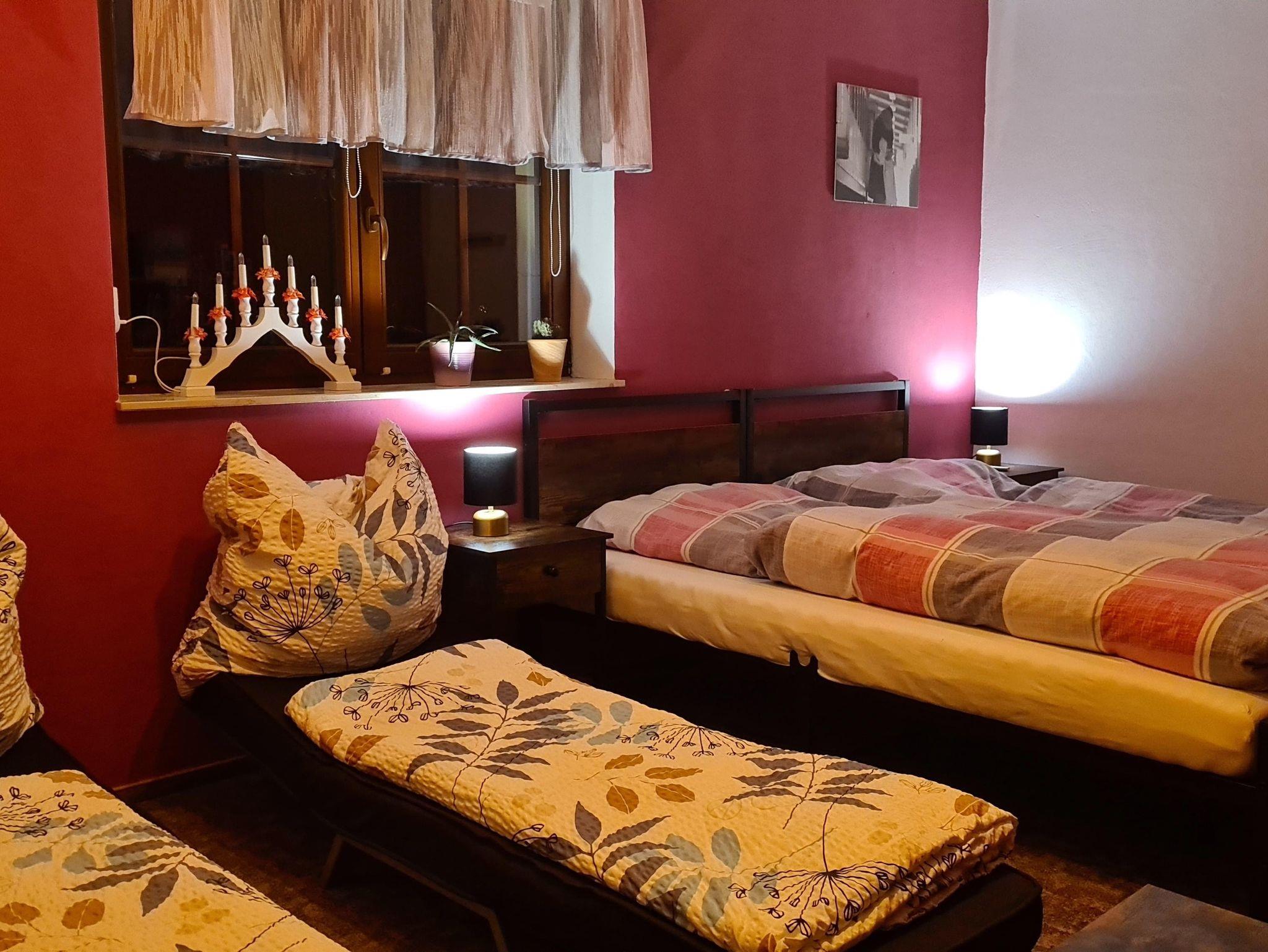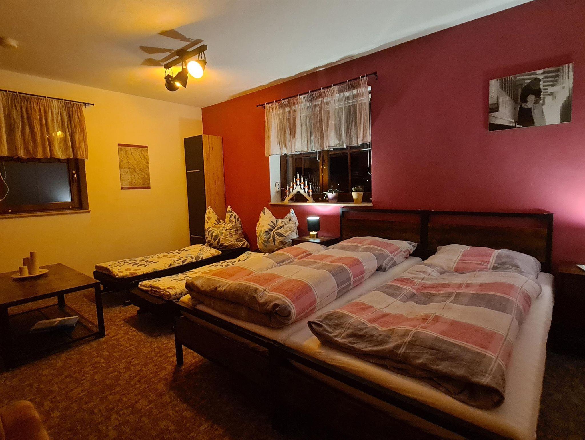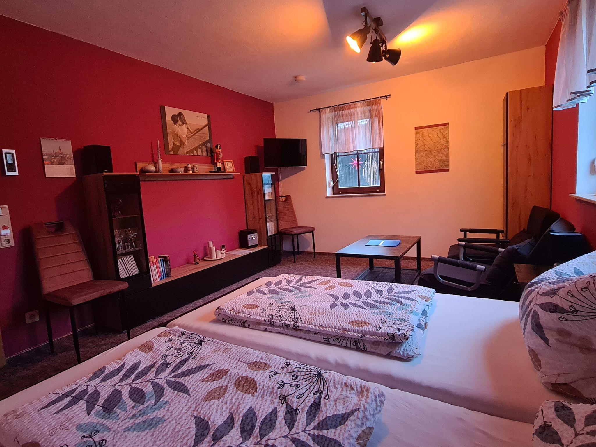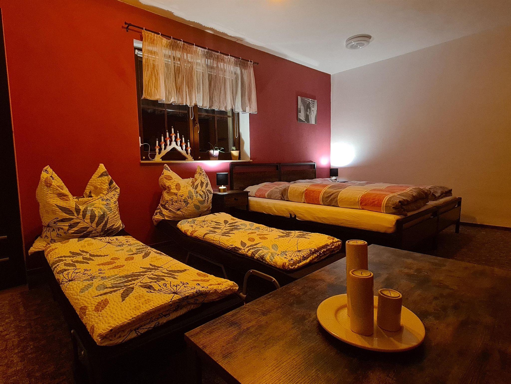 Unsere gemütliche, kleine Ferienwohnung befindet sich in Wolfsgrund (ca. 600 m üb. NN), einem kleinen Ortsteil der Gemeinde Dorfchemnitz/Sayda am Fuße des Erzgebirges. Zu unserer Ferienwohnung gehören eine Sauna, welche im Stil einer russischen Banja erbaut wurde und ganz urig mit Holz befeuert wird, sowie ein Salzwasserswimmingpool, ein eigener PKW-Stellplatz und ein stationäres und transportables Holzkohlegrill. Für unsere kleinen Gäste gibt es eine Rutsche, einen Kletterturm und Sandkasten. Auf unserem weitläufigen Gelände gibt es eine Streuobstwiese mit teilweise sehr alten Apfel-, Kirsch-, Pflaumen- und Birnenbäumen, auf welcher Schafe grasen. Der Zielbahnhof, bei einer Anreise mit der Bahn, ist Mulda oder Nassau.