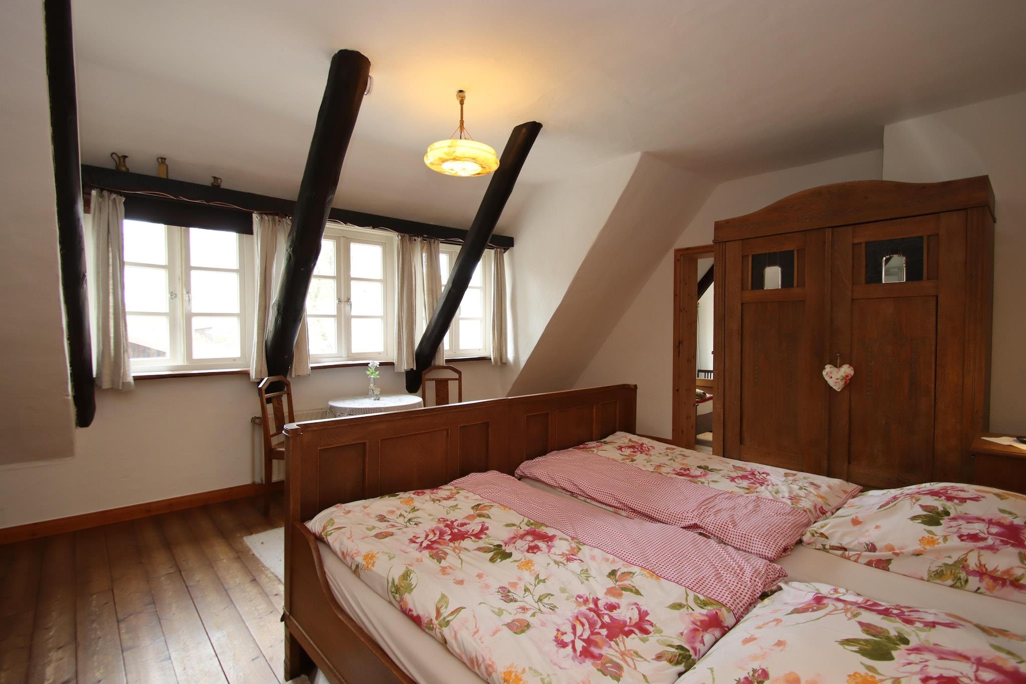 Stor lejlighed for op til seks personer med smarte tagbjælker og landlig charme. Køkkenet er udstyret med alt hvad du behøver for at være selvforsynende, og opholds- og spisestuen indbyder til afslappende timer. Børnene kan boltre sig og lege i den store fælles have. Gården, som er blevet smukt restaureret i historisk stil og med miljøvenlige byggematerialer, er et glimrende feriemål for at opdage Lüneburger Heide. Den lille landsby Dorfmark er en del af Bad Fallingbostel og har bevaret sit typiske landsbykarakter gennem sin tusindårige historie. Her finder du velholdte bindingsværkshuse med smukke haver og masser af natur med vandløb, vandhuller, enge og skove. Detaljer: Forbrugsbaserede energiomkostninger, sengelinned, håndklæder, slutrengøring, WiFi-mobilitet: Ikke egnet til personer med nedsat mobilitet
