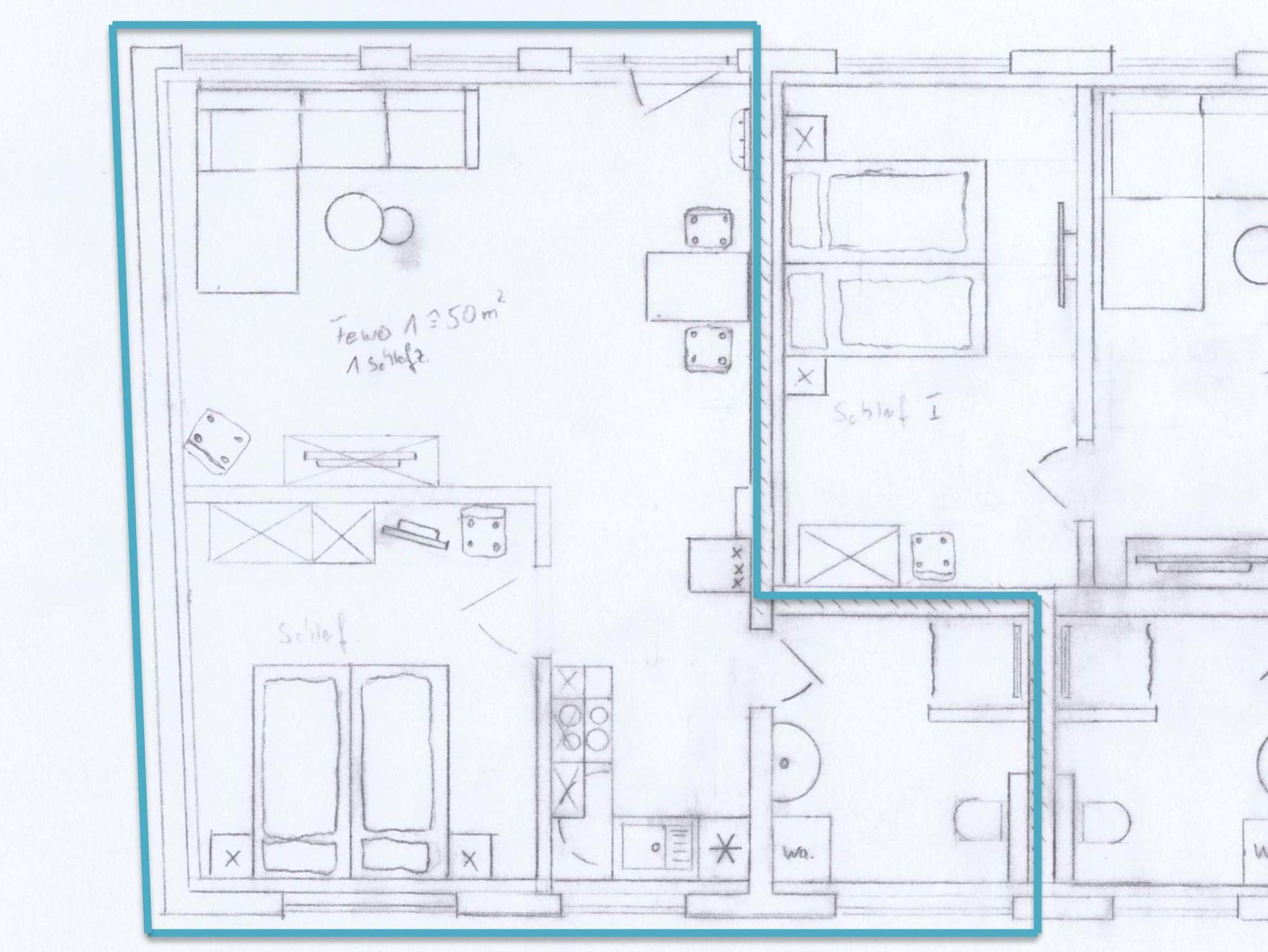 – 1 Schlafzimmer – 1 Badezimmer - 1 Küche