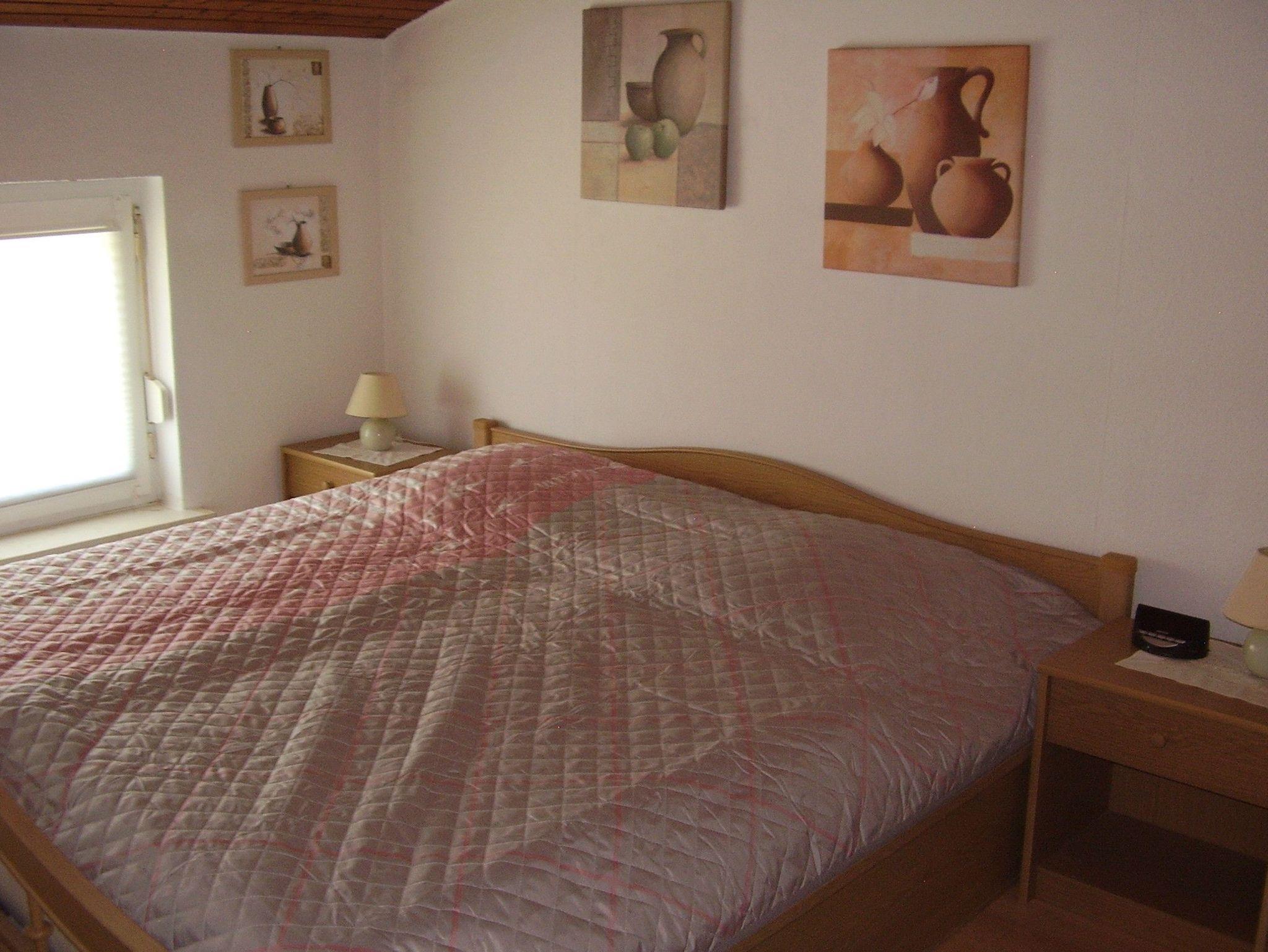 1 Schlafzimmer mit Doppelbett. Babyreisebett muss bei Bedarf mitgebracht werden.