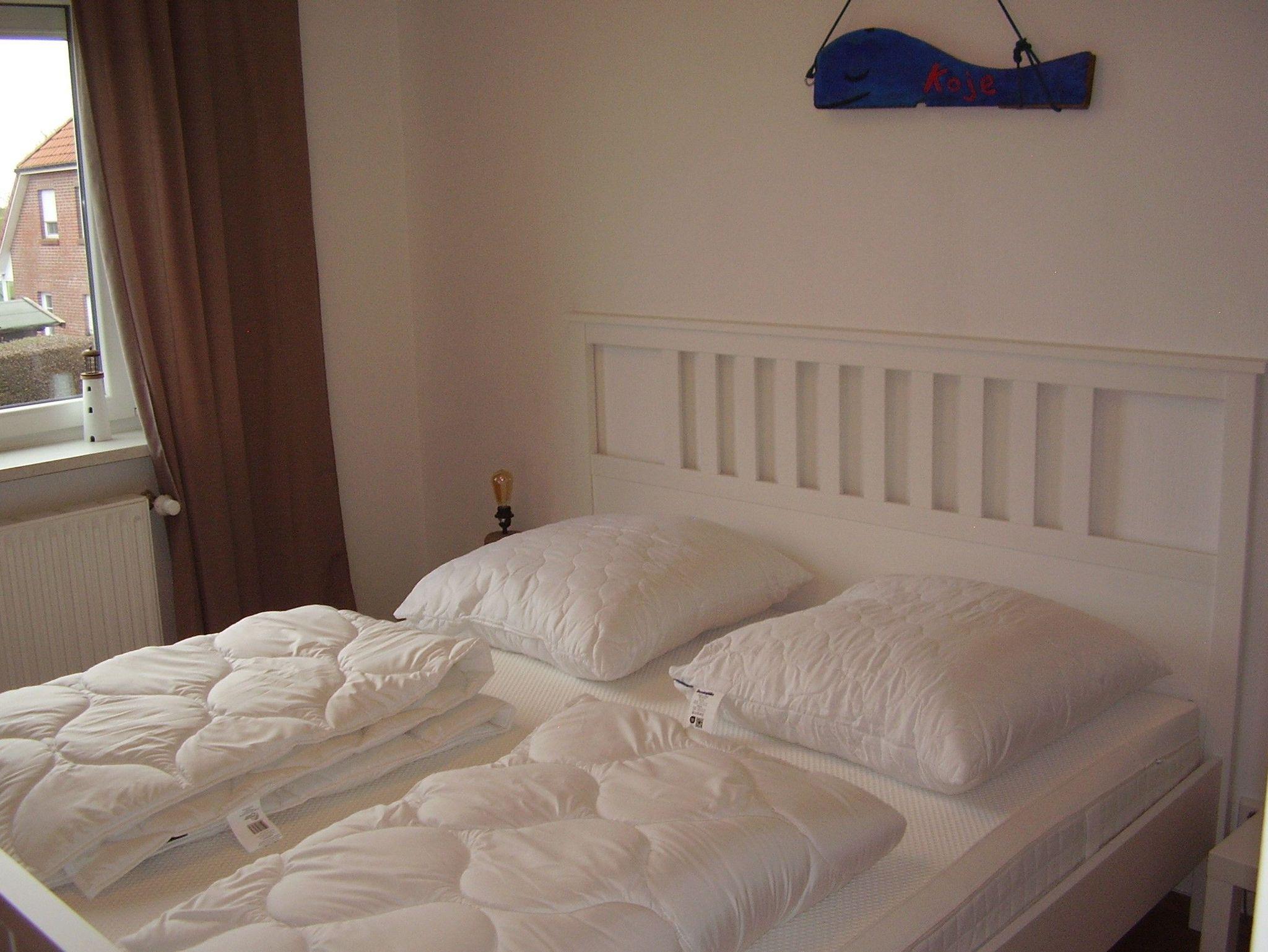 Das Schlafzimmer verfügt über ein Doppelbett.