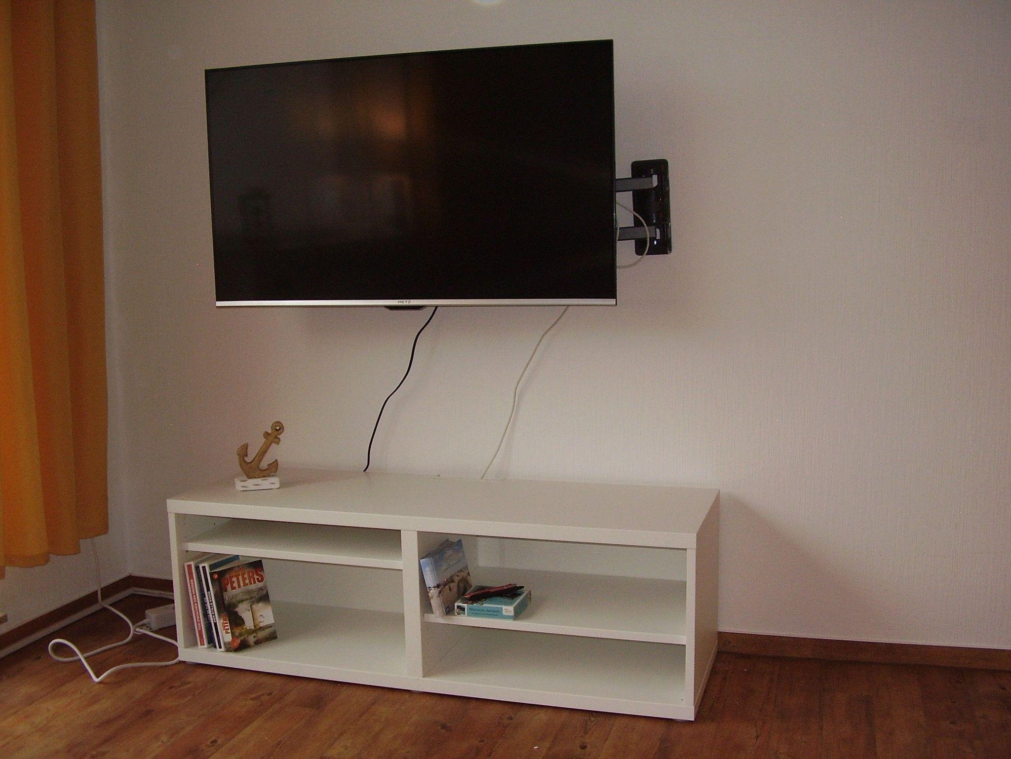 Gemütlicher offener Wohn- und Essbereich mit modernem Schlafsofa (2,00m x 1,40m), grosser Flachbild-TV und einem Essbereich mit Bestuhlung. Eine Belegung ist mit vier Personen und einem Baby (Babyreisebett vorhanden) möglich.
