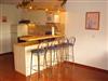Gemütliches Wohn- und Esszimmer mit Sitzgruppe und Flachbild-TV, EBK mit Esstheke, Geschirrspülmaschine, VierPlattenHerd mit Backofen, Kühl- und Gefrierkombination, Mikrowelle und allen erforderlichen Elektrogeräten.