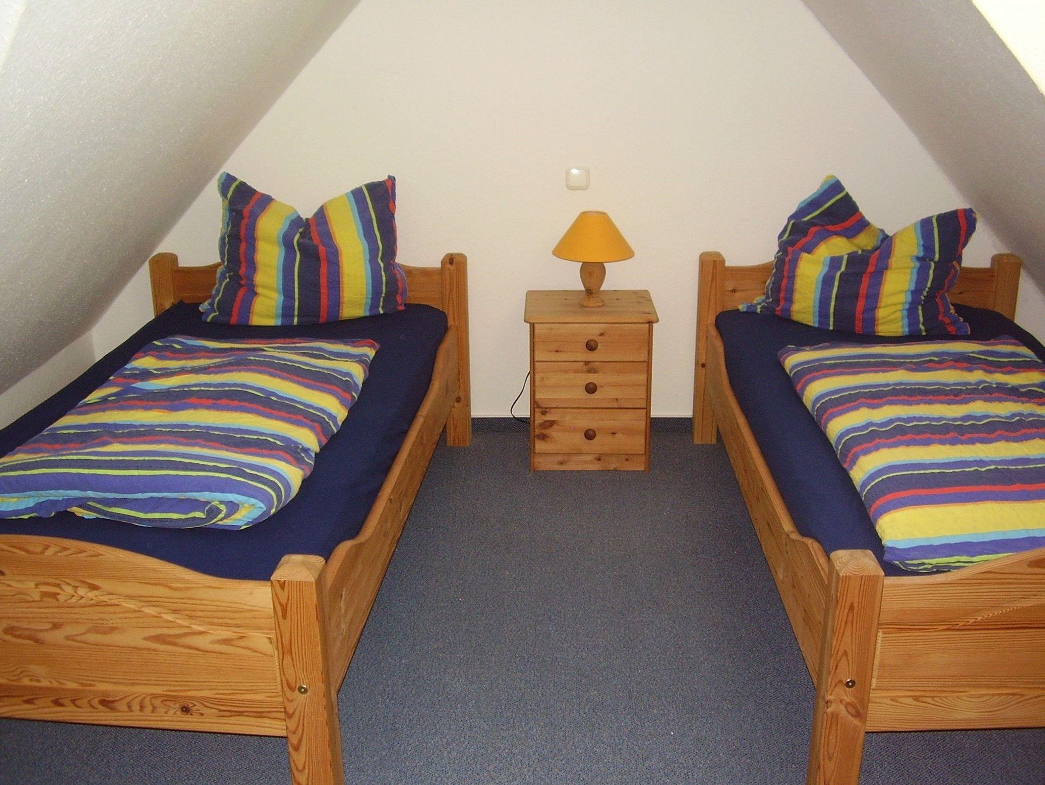 Ein Schlafzimmer mit zwei Einzelbetten.