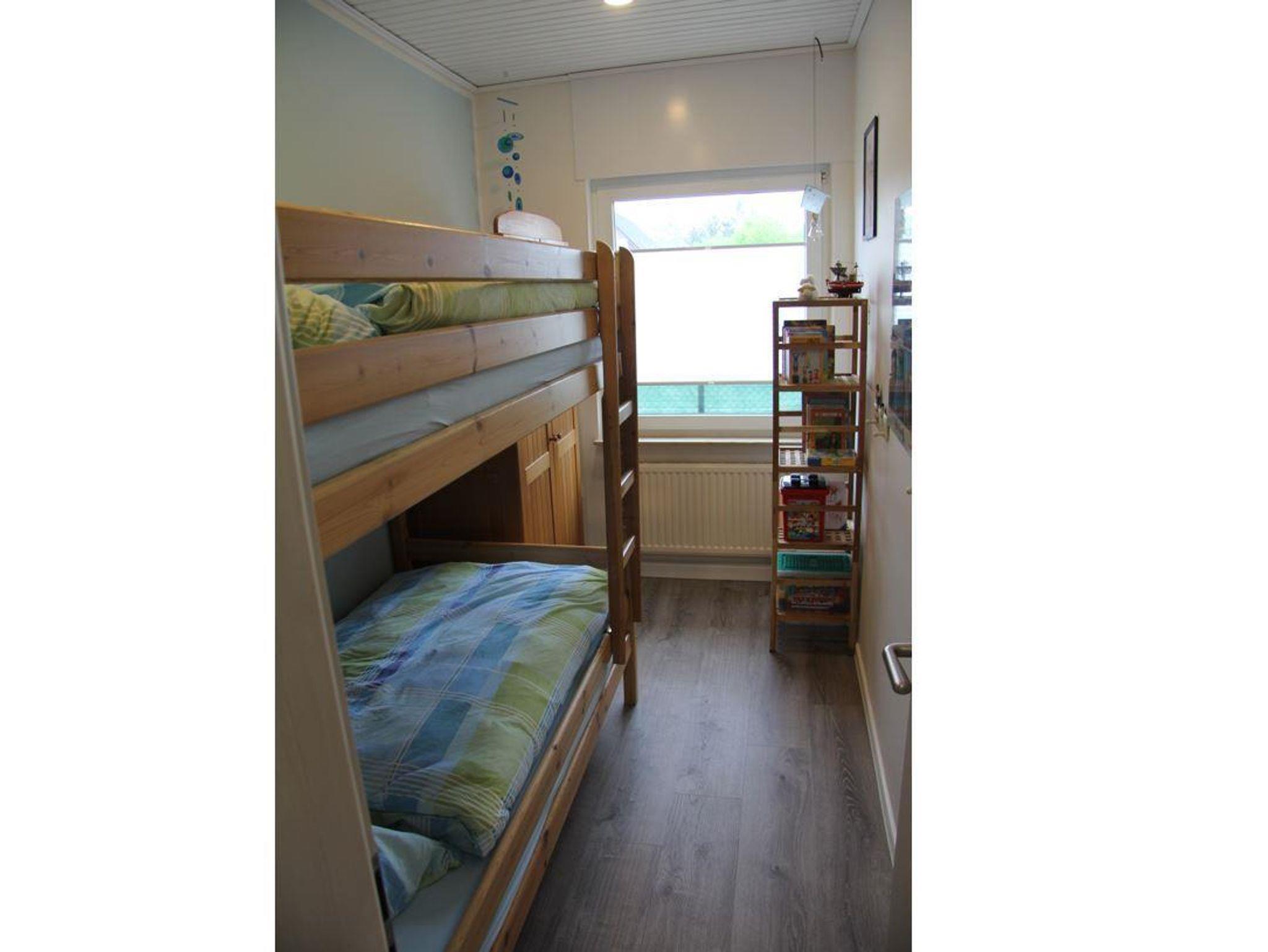 In unserem gemütlich eingerichteter Wohn- Essbereich werden Sie neben einem Sat-TV auch Bücher, Gesellschaftsspiele, Puzzle und Lego-Spielsachen vorfinden. Der große Esstisch läd zum spielen und genießen ein. Die Küche ist mit einer Küchenzeile ausgestattet. Eine Kaffeemaschine, Heißluft-Backofen, Spülmaschine und Mikrowelle ist vorhanden. Außerdem finden Sie hier alles, was sonst zum Kochen benötigt wird. Die Betten werden für Sie vor der Anreise mit Bettwäsche frisch bezogen. Um Bettwäsche müssen Sie sich daher nicht kümmern. Die folgenden drei Schlafzimmer stehen für Sie zur Verfügung: Elternschlafzimmer mit Doppelbett, Kinderzimmer mit Etagenbett, Kinderzimmer mit Schlafcoach 90 x 200 cm (ausziehbar auf 140 x 200 cm), sowie ein Kinderbett 70 x 130 cm. Im Badezimmer mit separatem WC finden Sie neben einer Dusche ebenso einen Fön. Wenn nach einem erholsamen Tag am Meer einmal Wäsche anfällt, finden Sie im Keller neben einer Waschmaschine und einem Trockner auch das Bügelbrett und -eisen.
