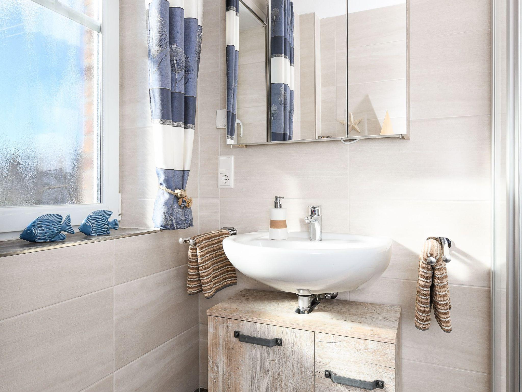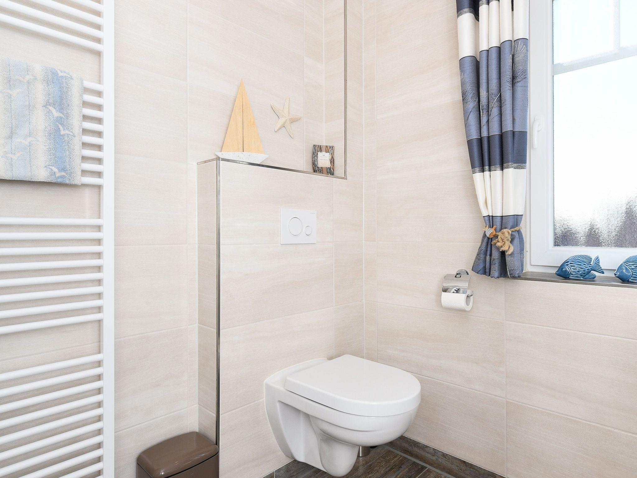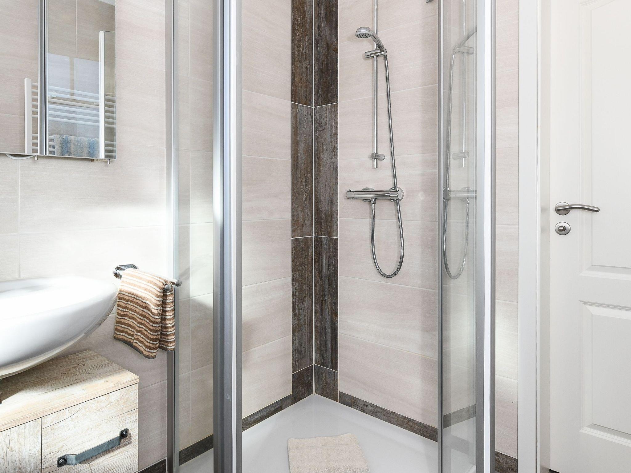 Badezimmer mit Dusche, Waschtisch und WC