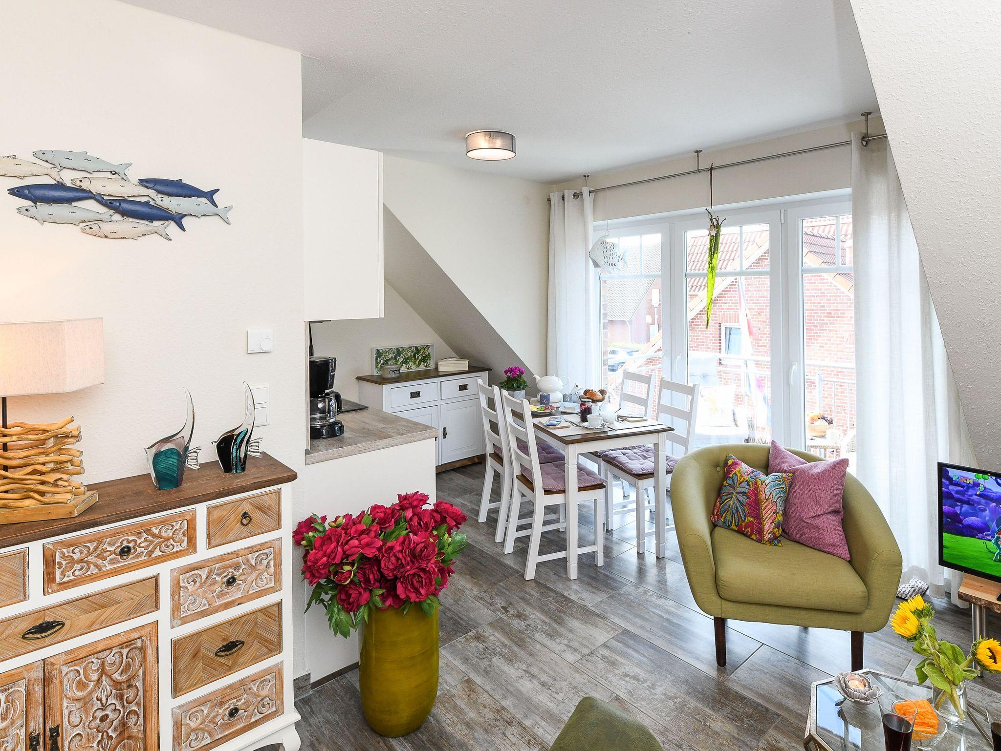Das Haus mit der Ferienwohnung „Kiebitz“ steht an bevorzugter Stelle im Nordseebad Dornumersiel in einem sehr ruhigen Teil des Ortes.