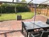 Komplett eingezäunter Garten mit überdachter Terrasse mit ausreichend Gartenmöbeln.