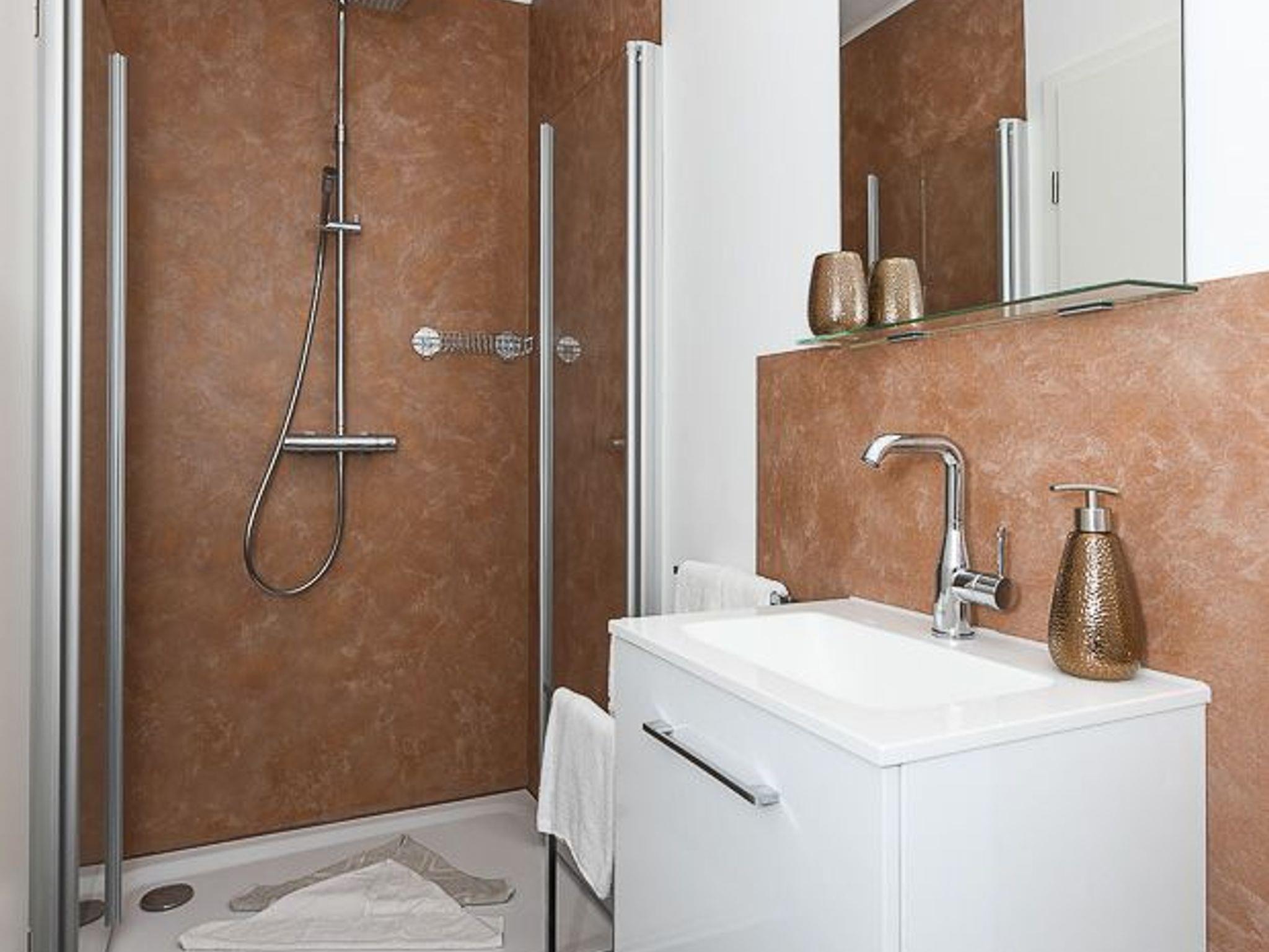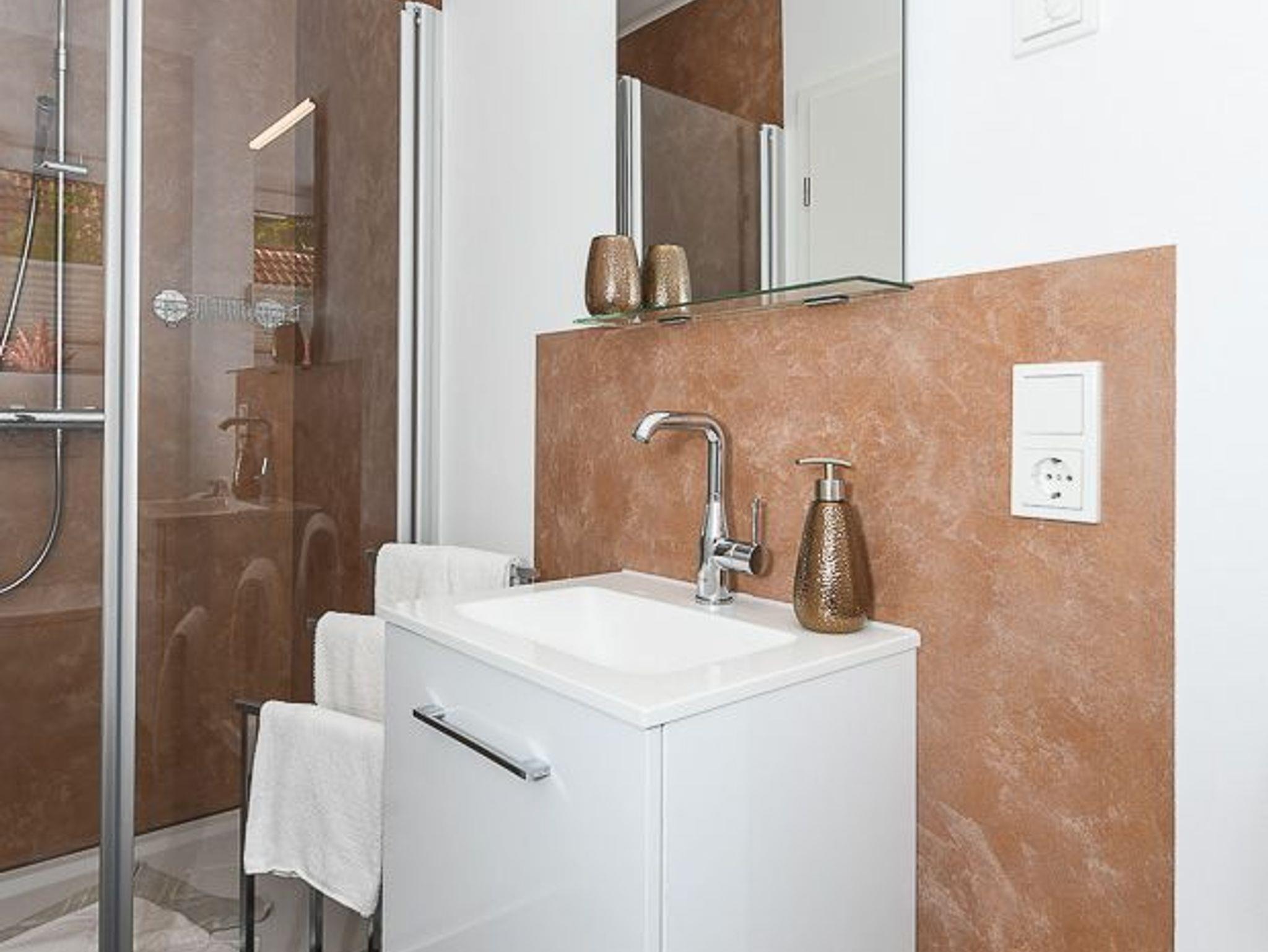 zweites Badezimmer mit Dusche, Waschtisch und WC