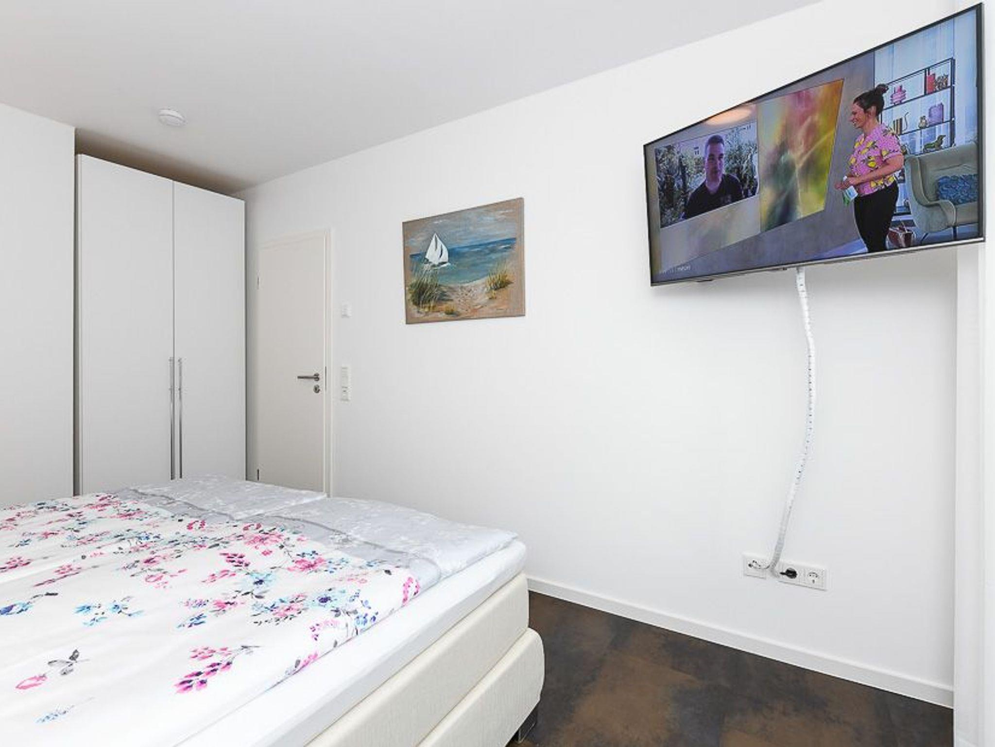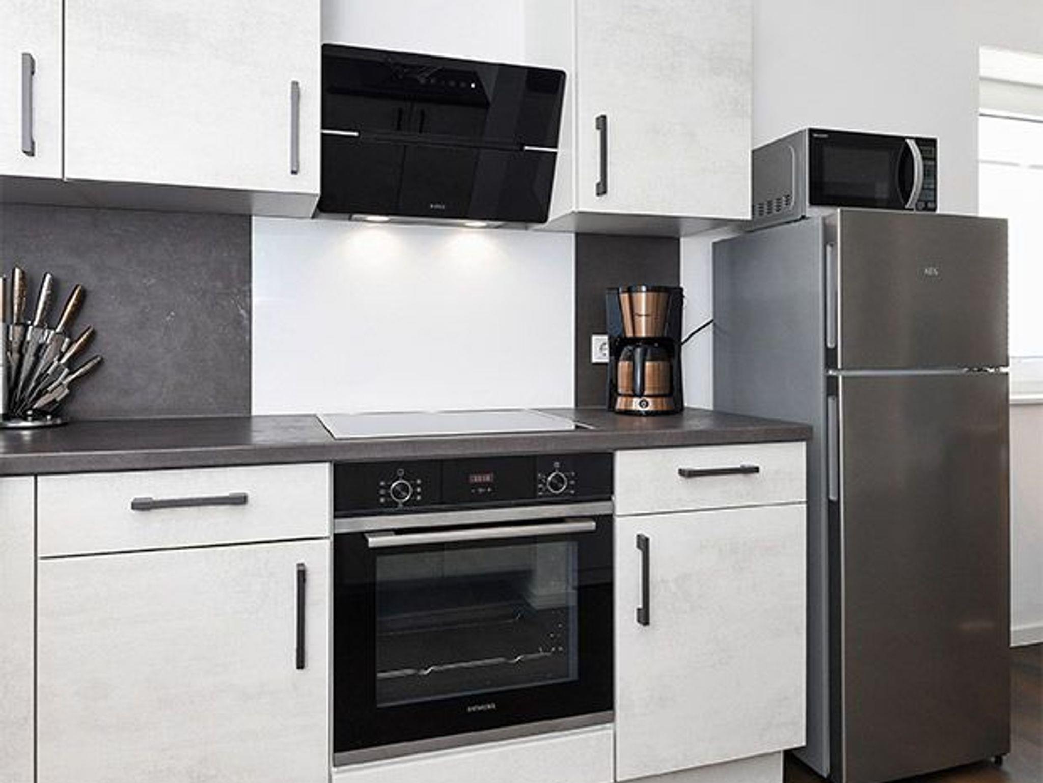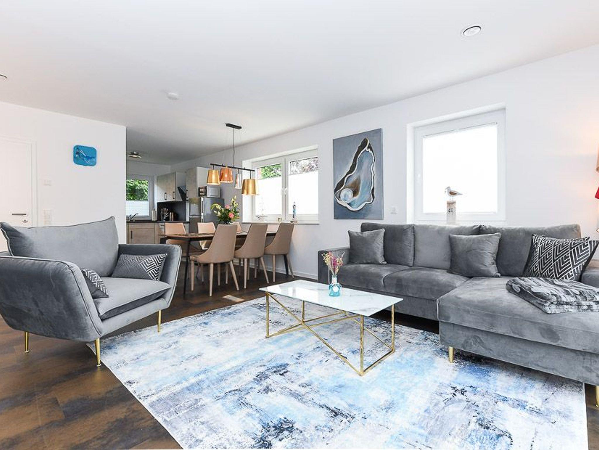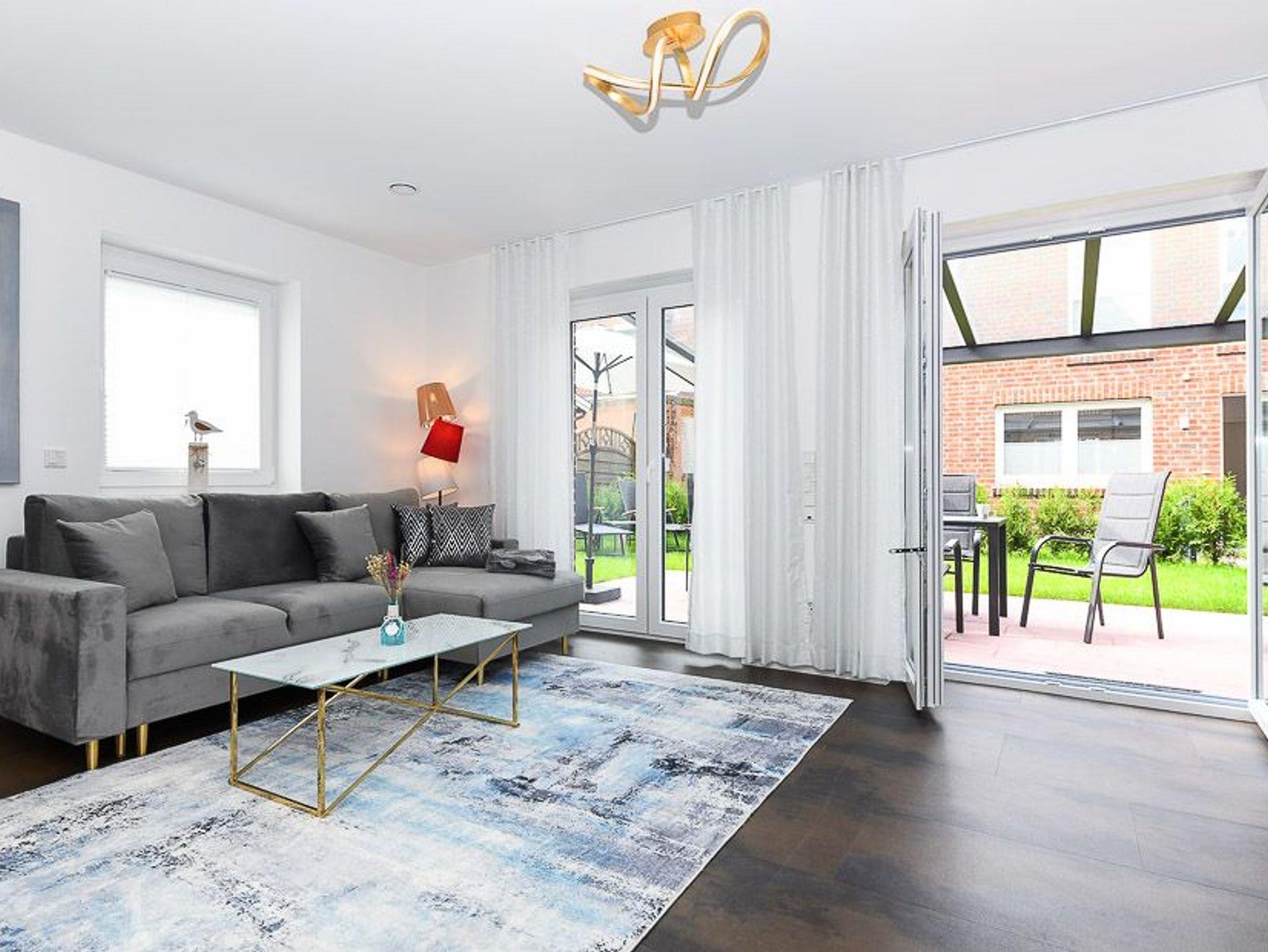 Im Wohnzimmer steht ein bequemes Schlafsofa bereit für einen 5. Gast.