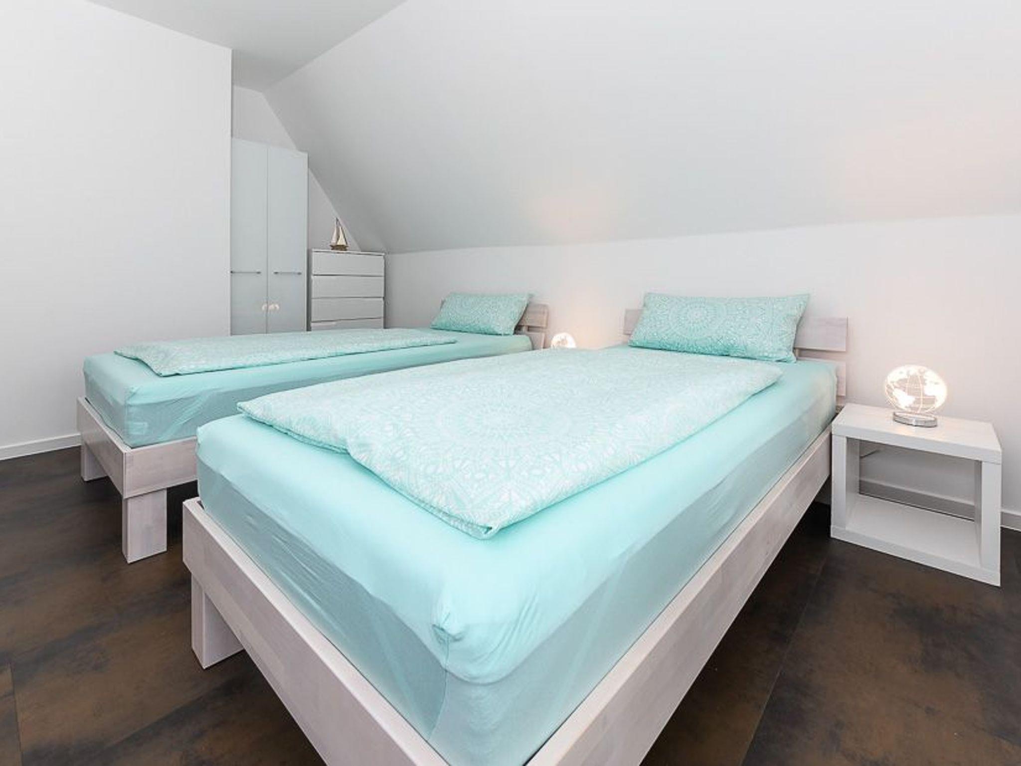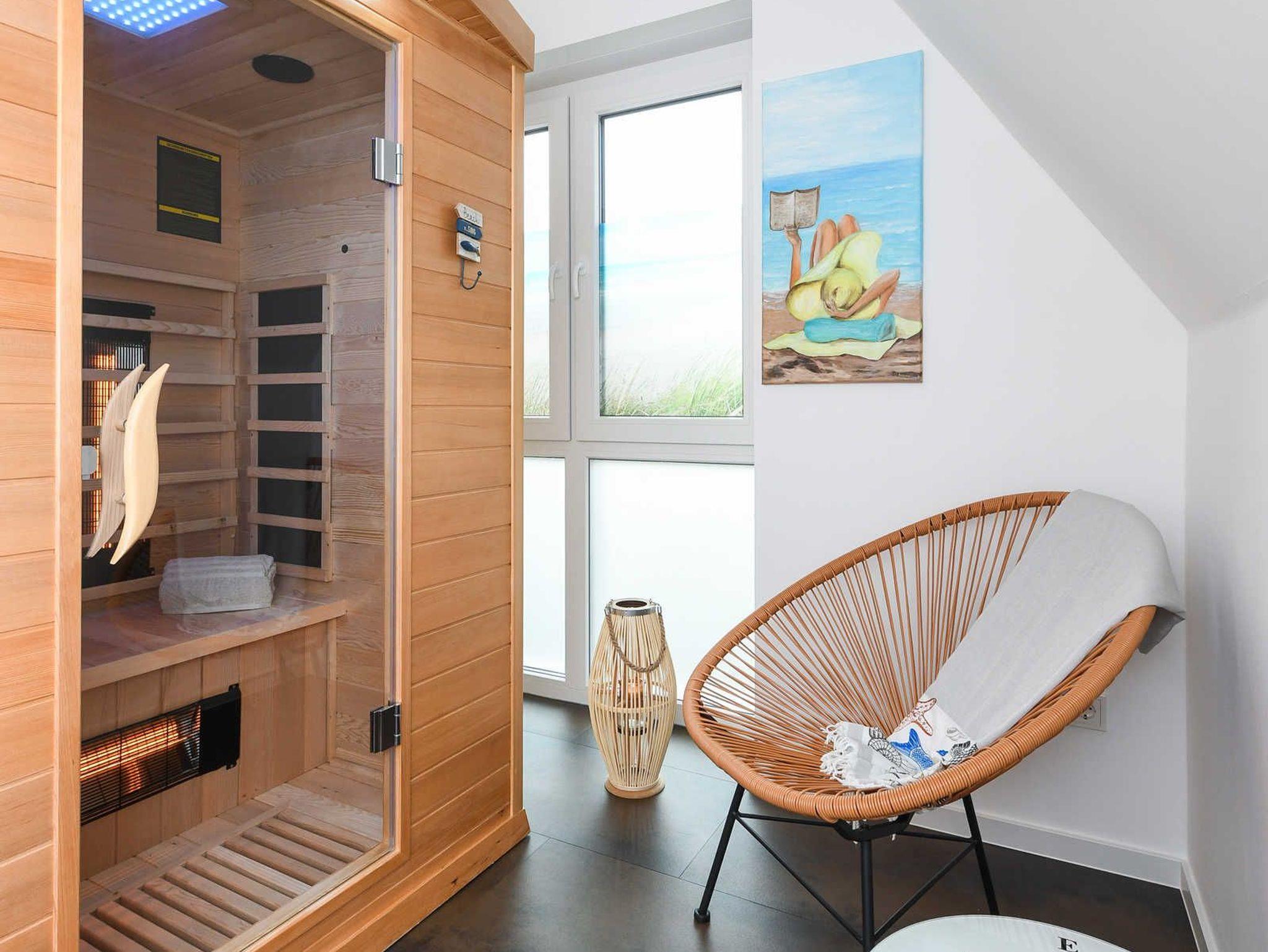 Das geräumige Ferienhaus ist ungefähr 90 Quadratmeter groß. Es gibt zwei Schlafzimmer sowie zwei Badezimmer und als besonderes Extra eine Infrarot-Lichtkabine (Infrarot-Sauna).