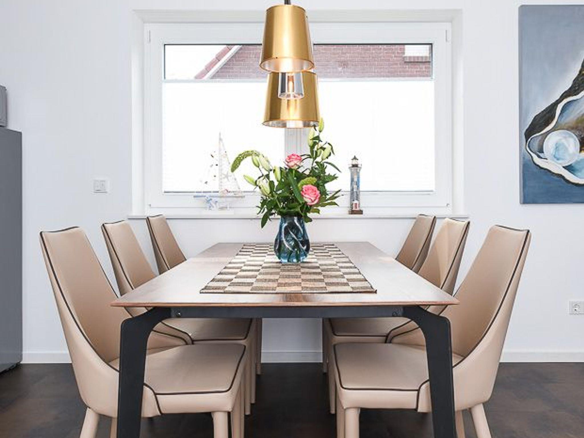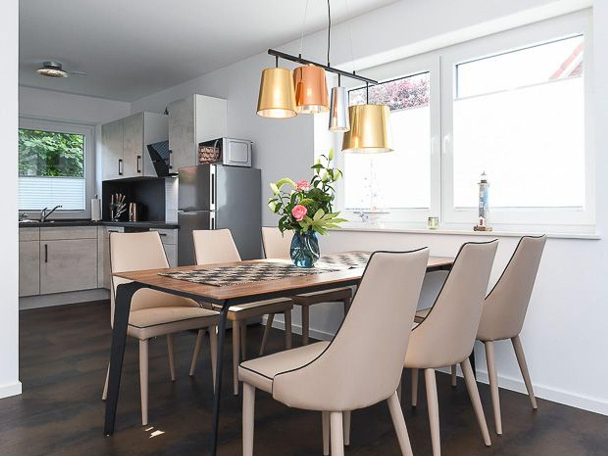 Das Ferienhaus „Nordseeperle“ ist damit optimal geeignet für Ihren Nordseeurlaub mit zwei bis fünf Personen. Sehr gemütlich und großzügig gestaltet ist auch das große Wohn- und Esszimmer mit einem abgeteilten Küchenbereich und mit einer schönen sonnigen anliegenden Terrasse die überdacht ist.