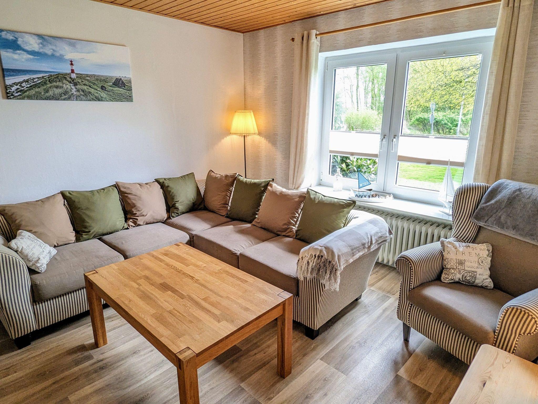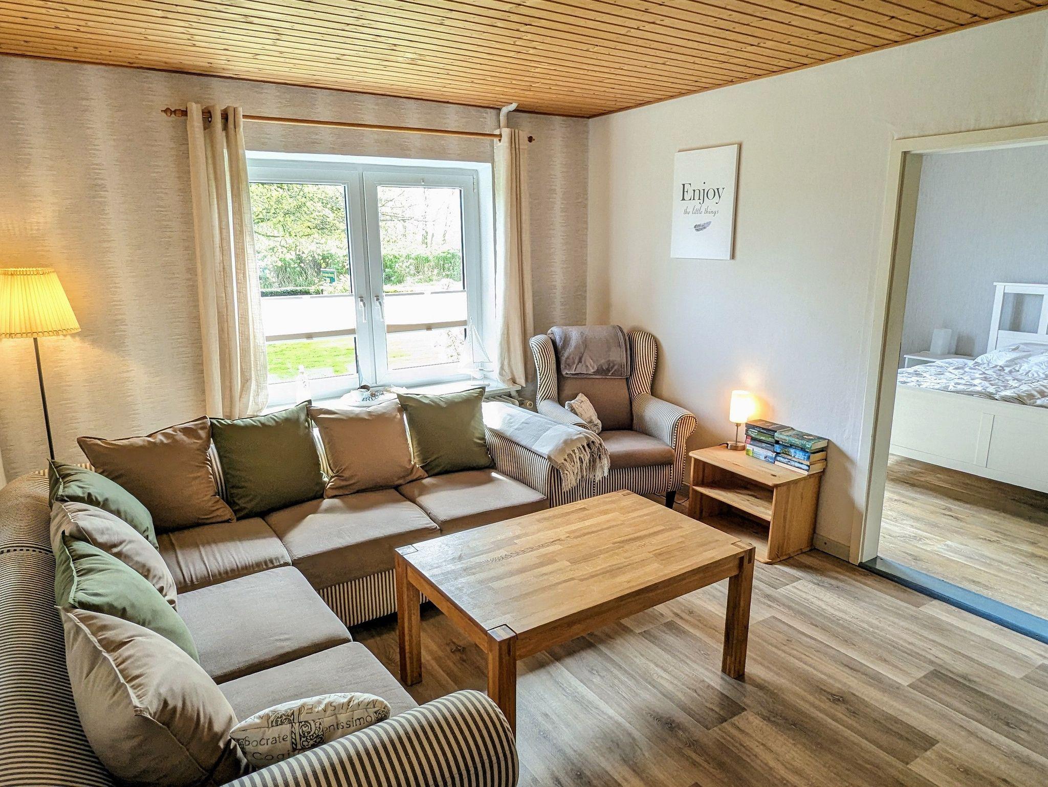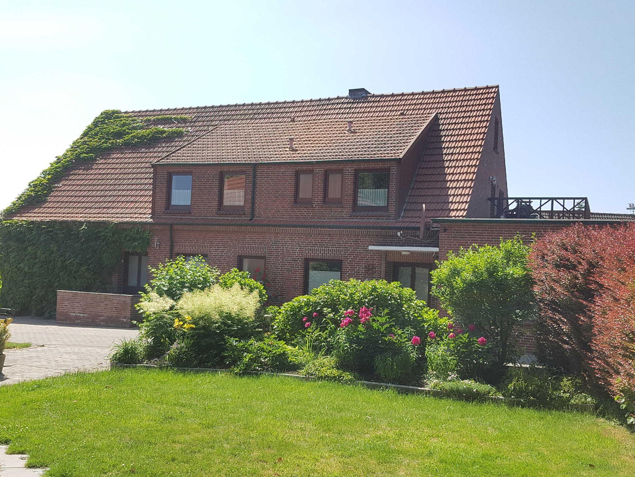 Die Wohnung Landhaus Erdgeschoss verfügt über zwei Schlafzimmer mit jeweils einem Doppelbett, im großen Schlafzimmer ist zusätzlich ein Babybett vorhanden. Weiter besteht die Wohnung aus einem Wohnzimmer mit einem großen Sofa und Sat-TV, einer komplett ausgestatteten Küche und einem Duschbad. Ein großer Garten lädt zum verweilen ein.
