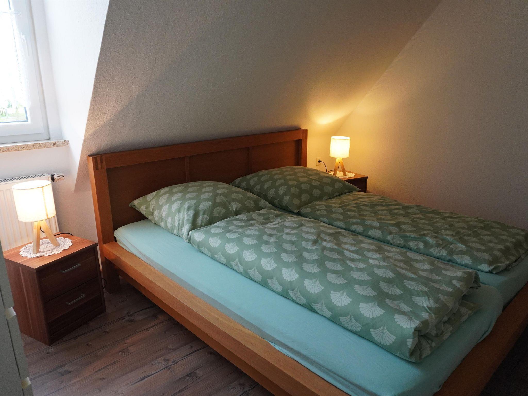 Im Schlafzimmer steht ein großes 2,00m x 2,00m Bett für Sie bereit. Das Badezimmer ist mit einer Dusche und WC ausgestattet.