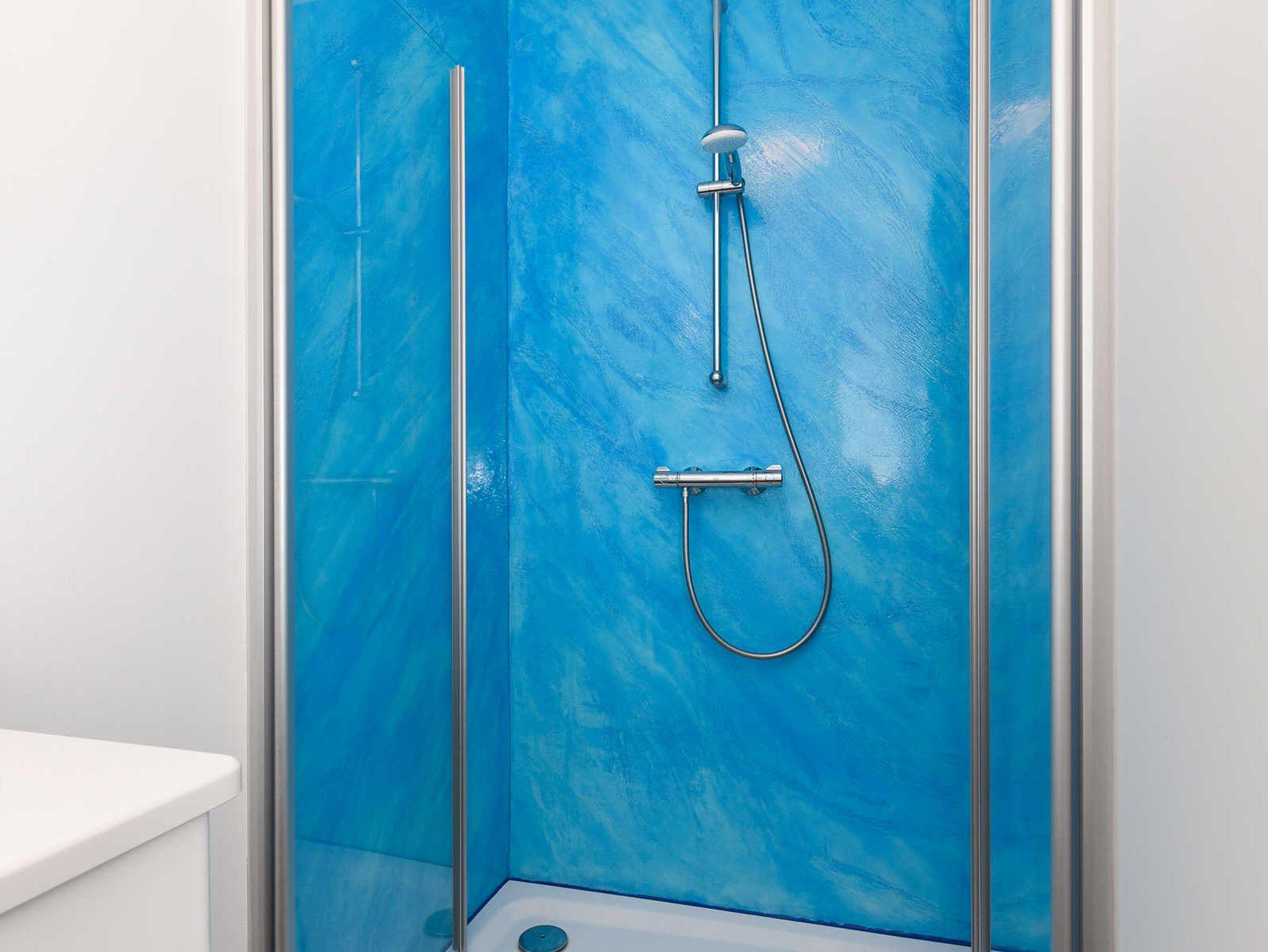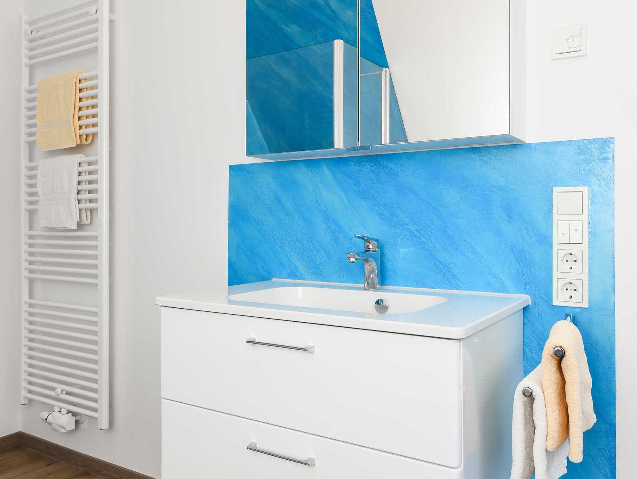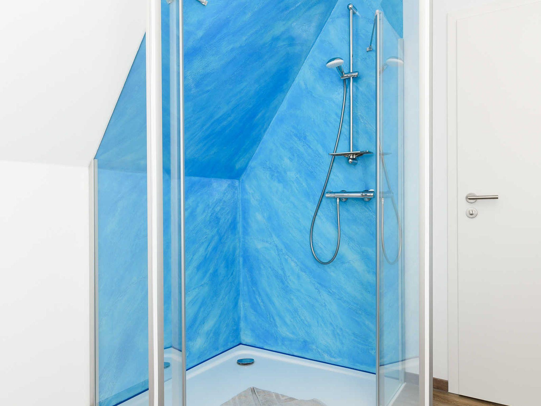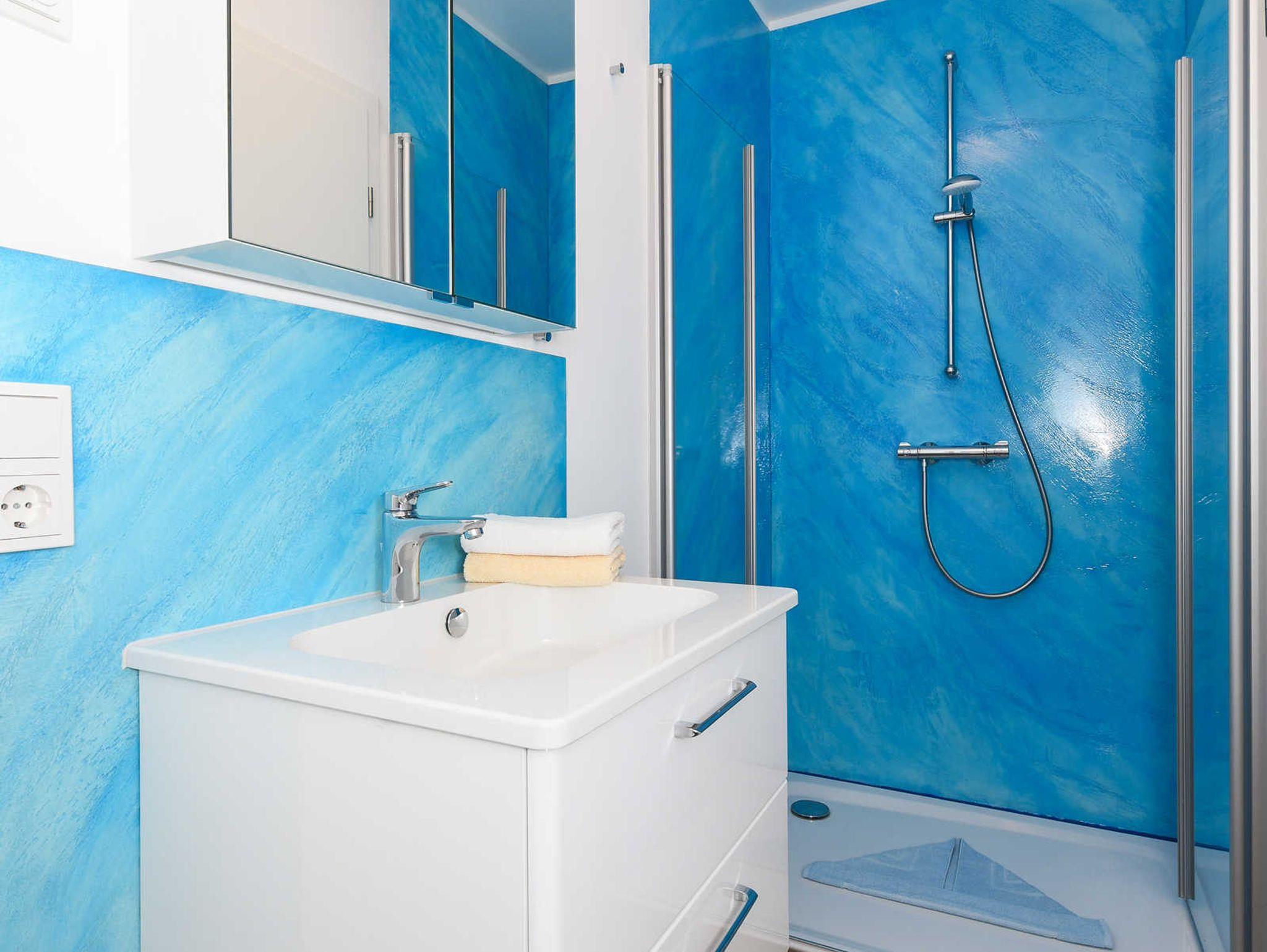 zweites Badezimmer mit Dusche, Waschtisch und WC