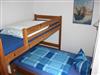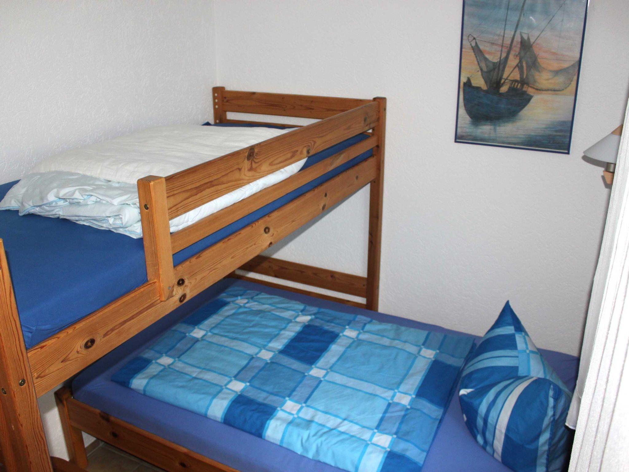 Ein Schlafzimmer mit Doppelbett. Ein Schlaf- oder Kinderzimmer mit Etagenbetten.