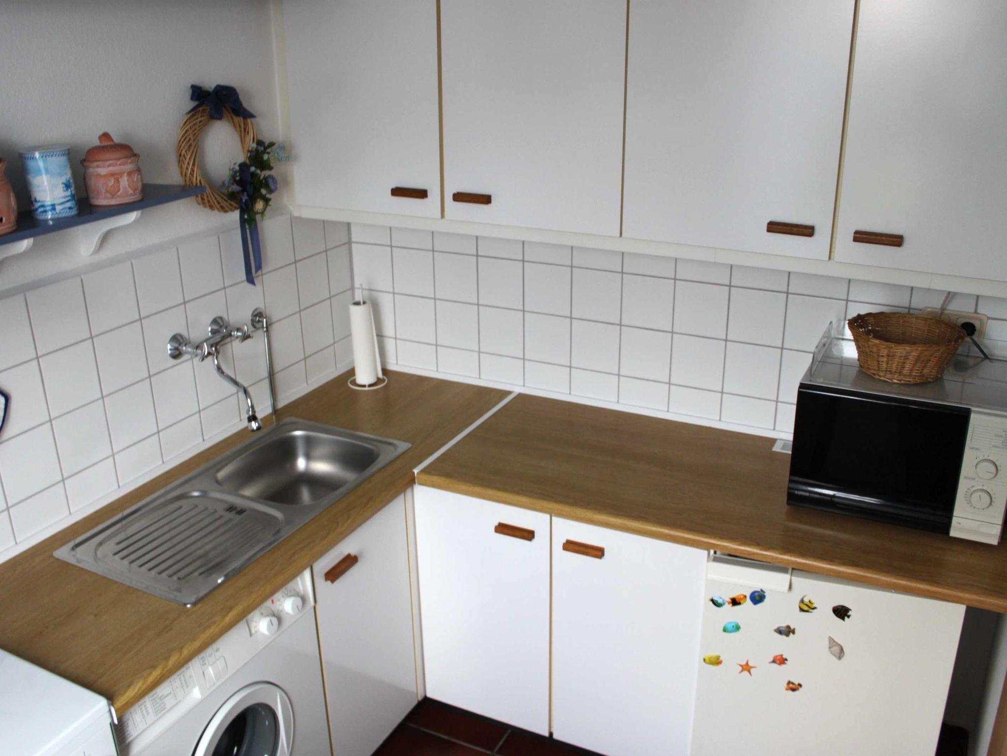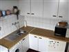 Separate Küche mit 4Plattenherd mit Backofen, Waschmaschine und mit allen erforderlichen Elektrogeräten, Töpfe. Gedecke und Bestecke..