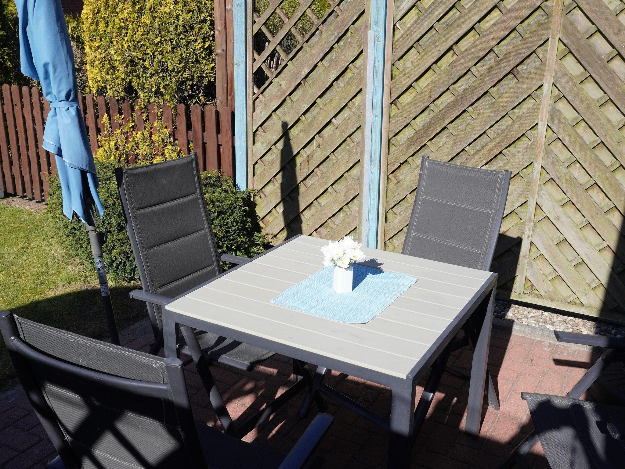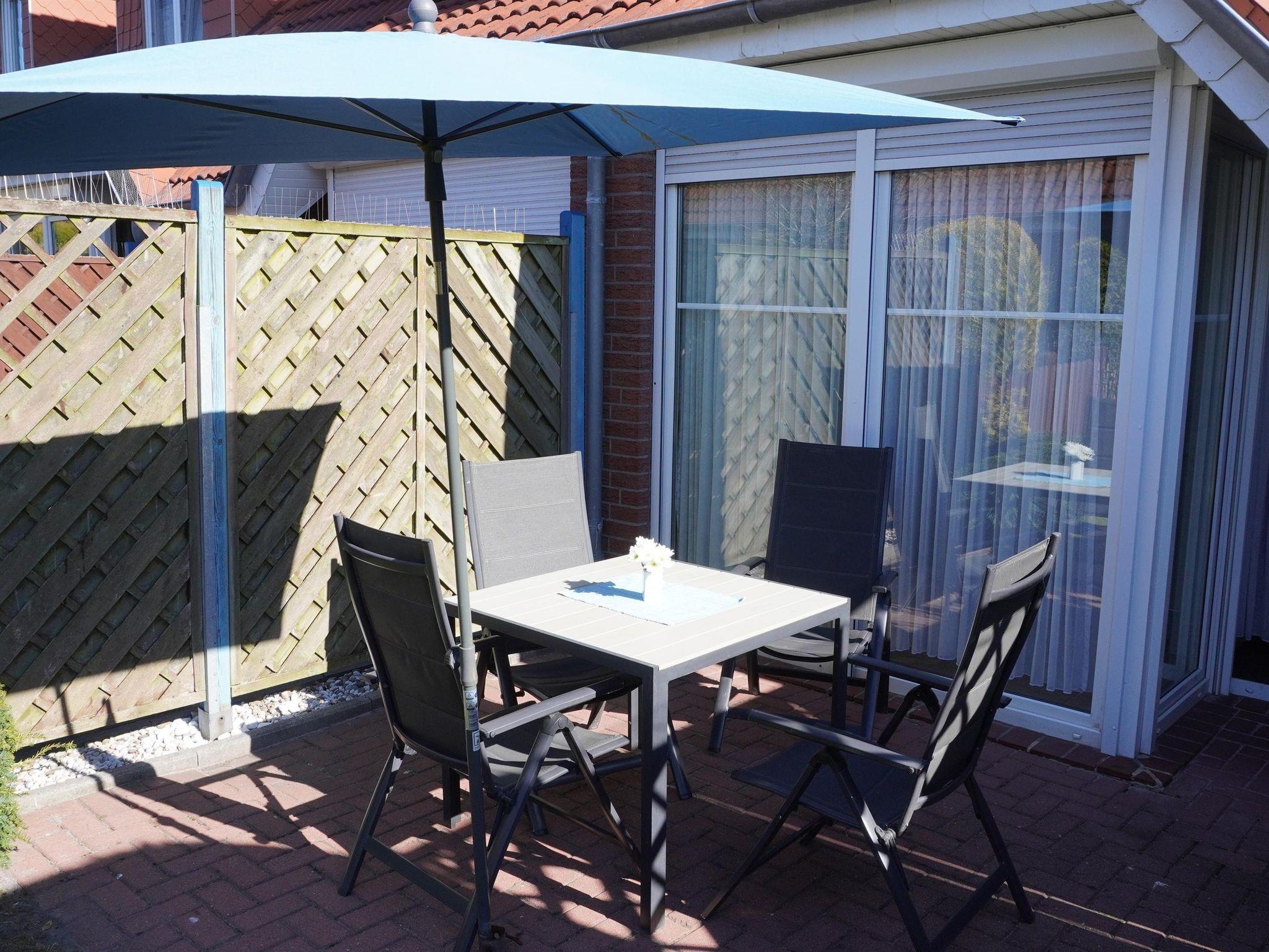 Unser Ferienhaus befindet sich in zentraler und dennoch ruhiger Lage. Es erwartet Sie eine zum Südwesten ausgerichtete, geschützte Terrasse mit Gartenmöbeln, 2 Sonnenliegen und Grill.