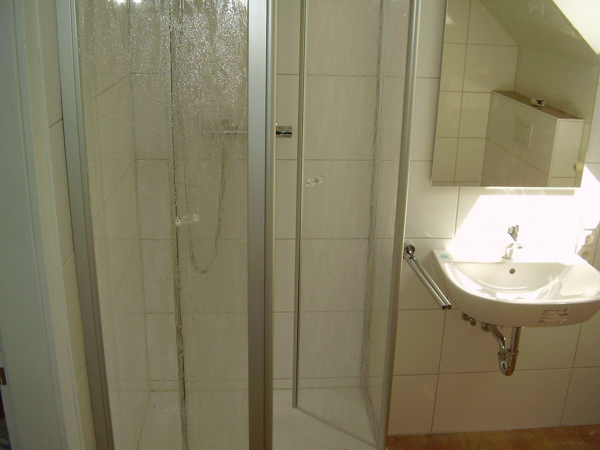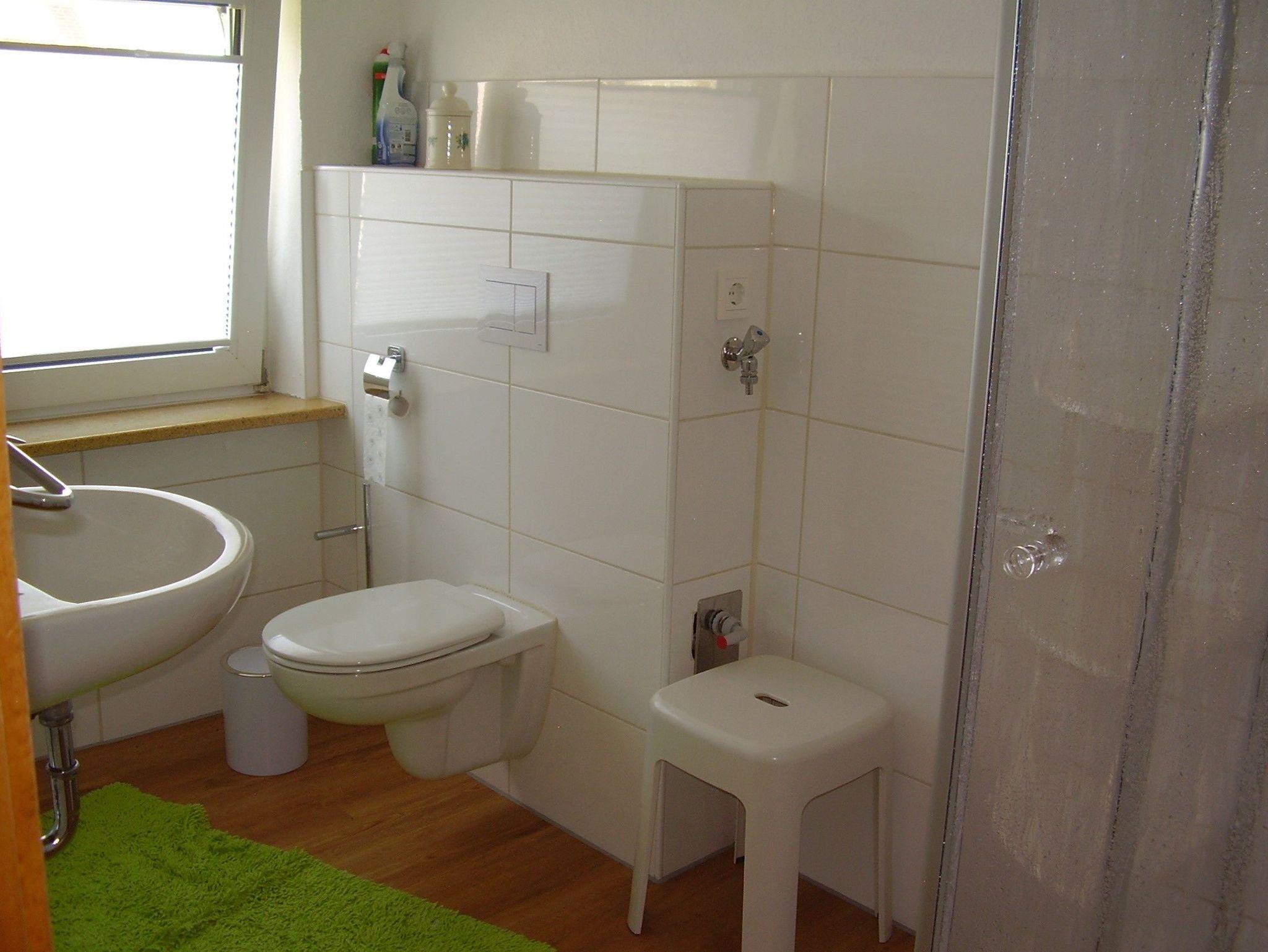 Tageslicht-Badezimmer mit Dusche und WC.
