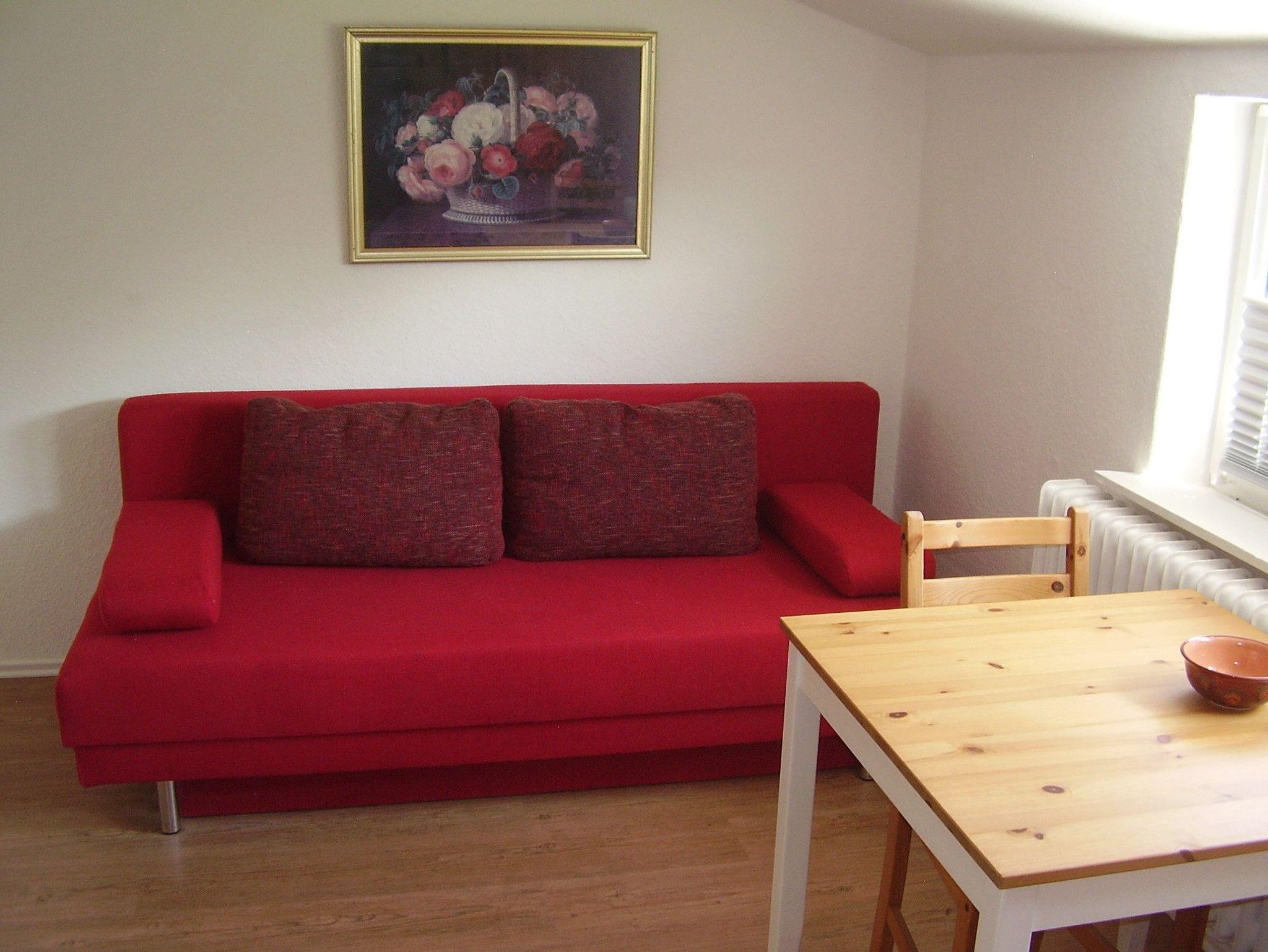 Ein Durchgangszimmer mit Doppelschlafcouch.