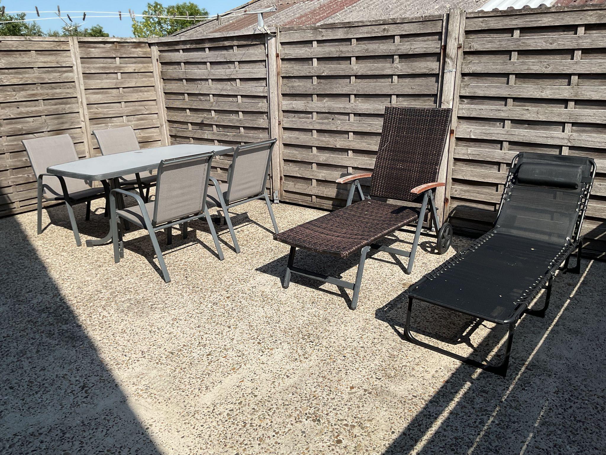 Ca. 30m² grosse sicht- und windgeschützte Dachterrasse mit Gartenmöbel.